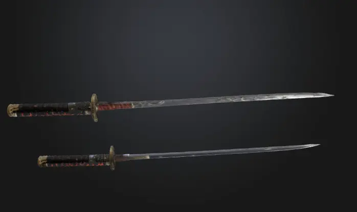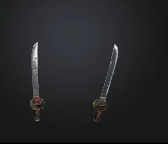 Two broken katanas with distinct damage