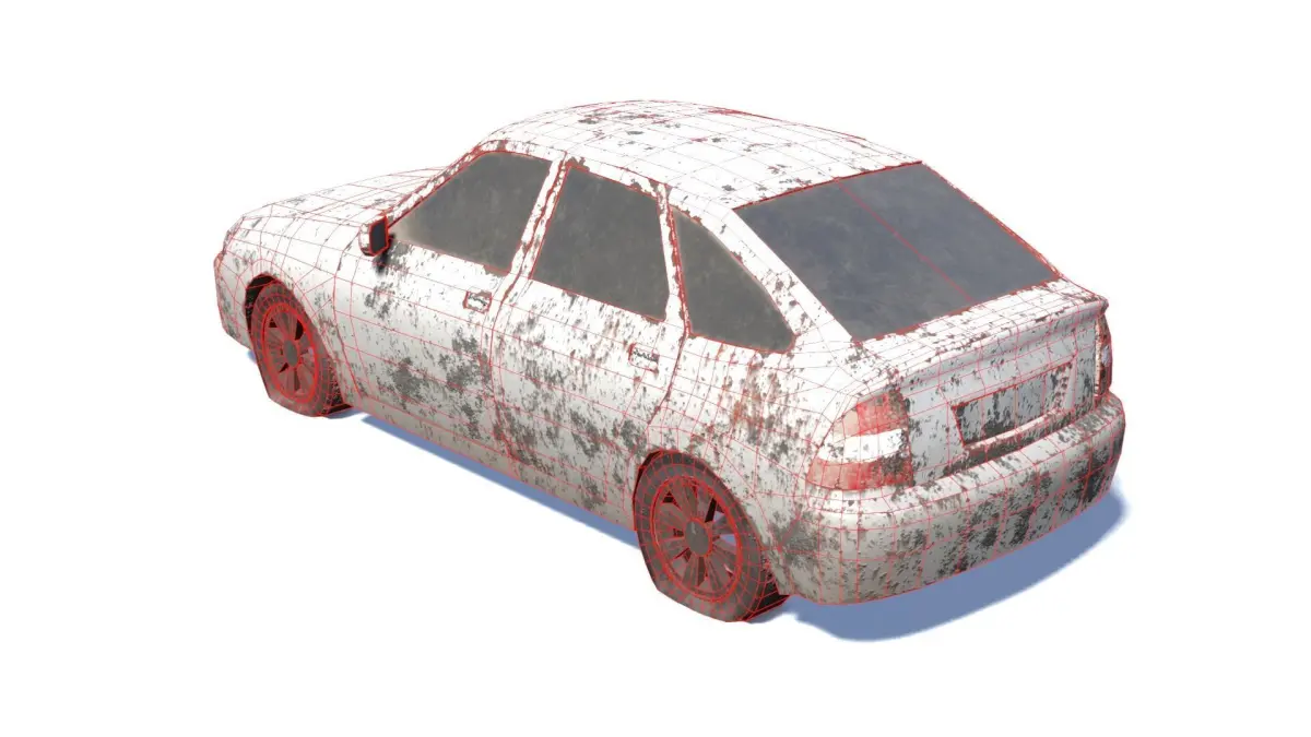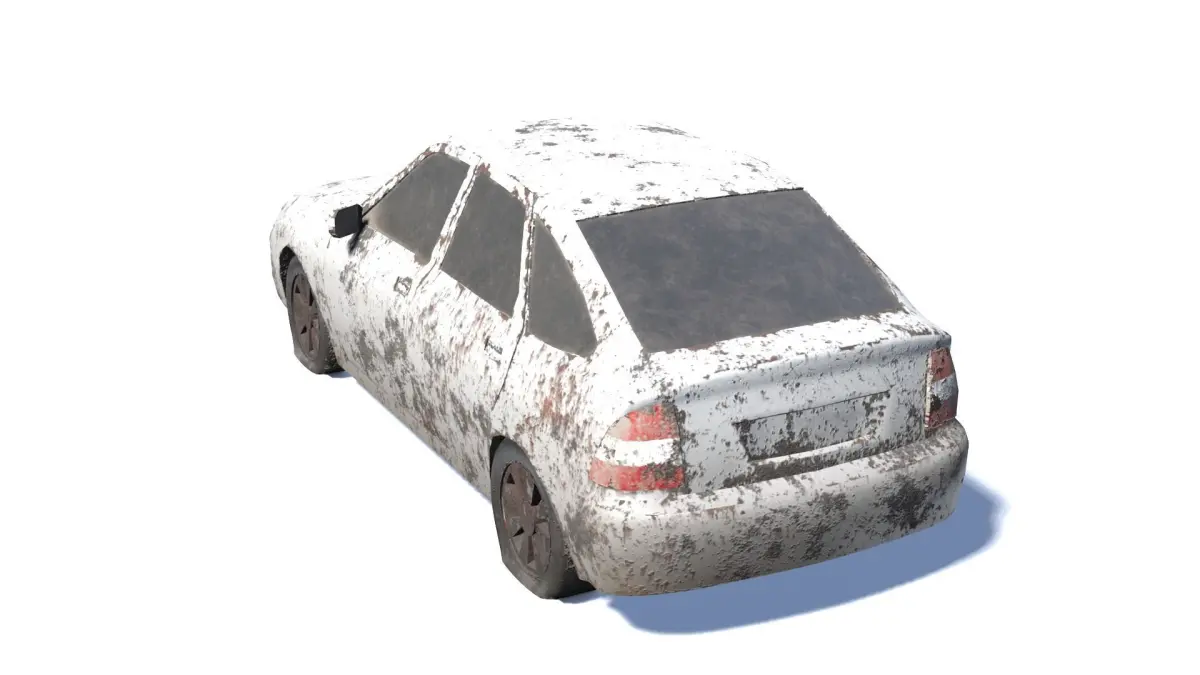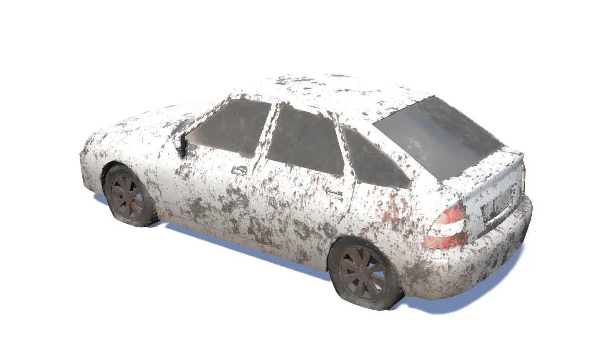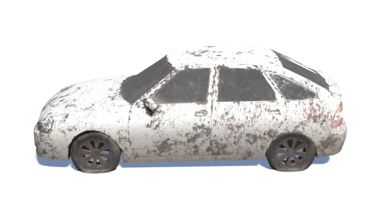 Broken Rusty Car, Game-ready PBR-Model.Post-apocalyptic exterior model.Texture maps 2048 x 2048:-baseColor,-height,-metallic,-normal,-occlusion,