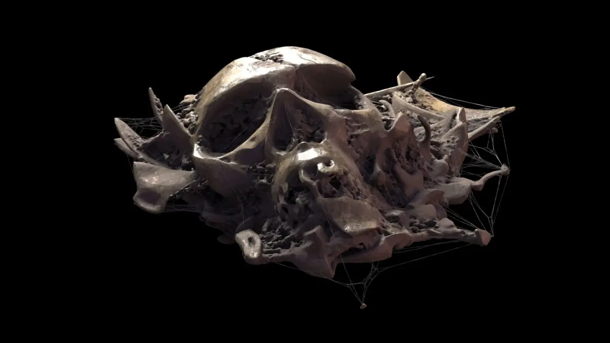 Skulls and Spider webs are separated meshes (skull01+skull01_web, Skull02+Skull02_web, Skull03+Skull03_web,...)