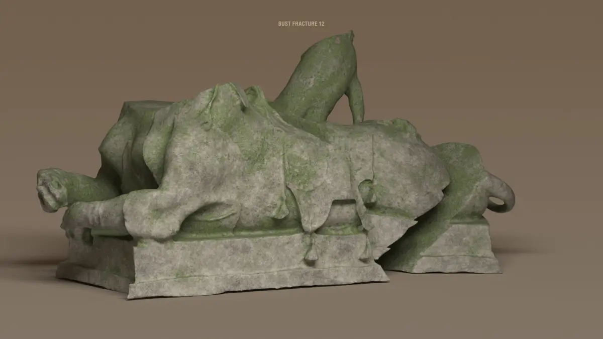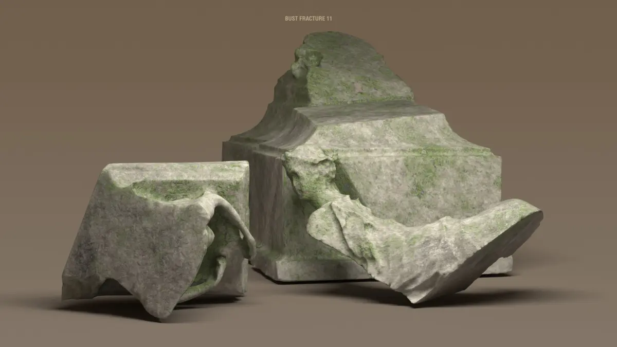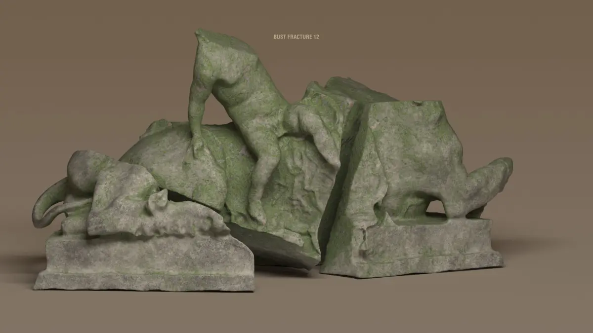 The objects were left in their natural equilibrium position after the fracture simulation was carried out. However, they can be rotated, moved and scaled to create other contexts.