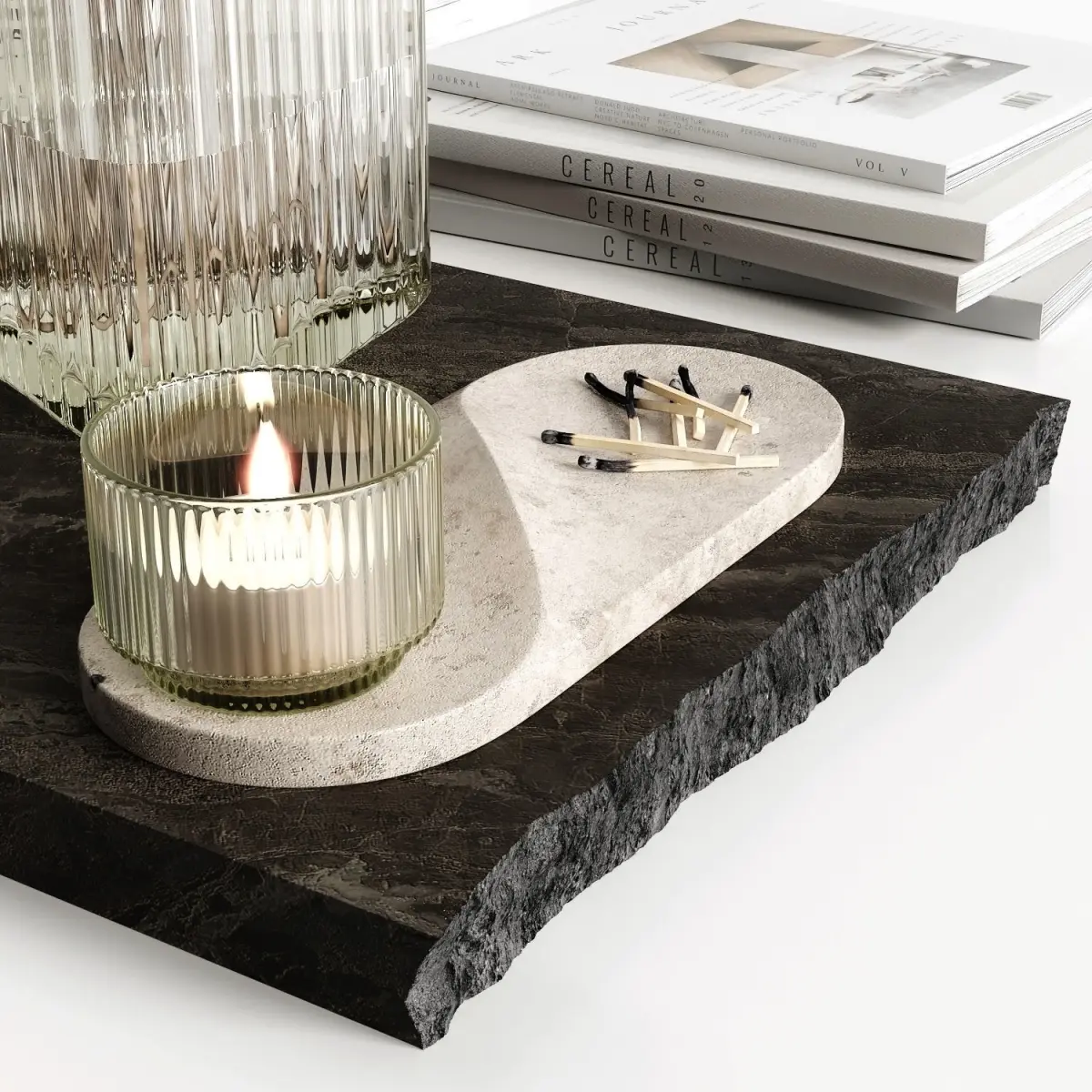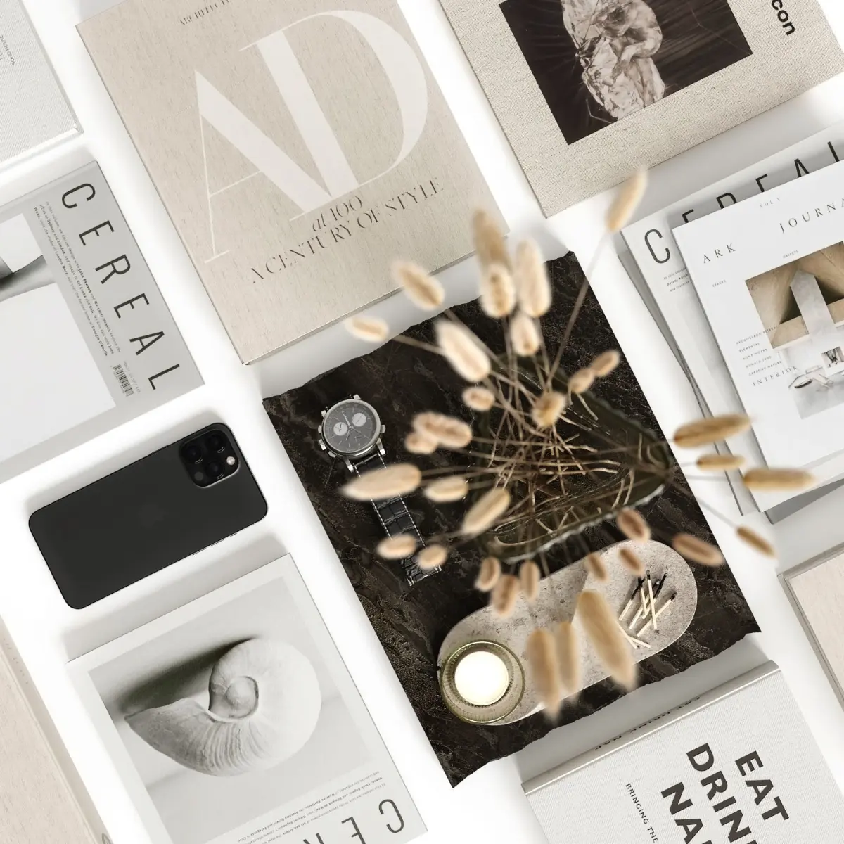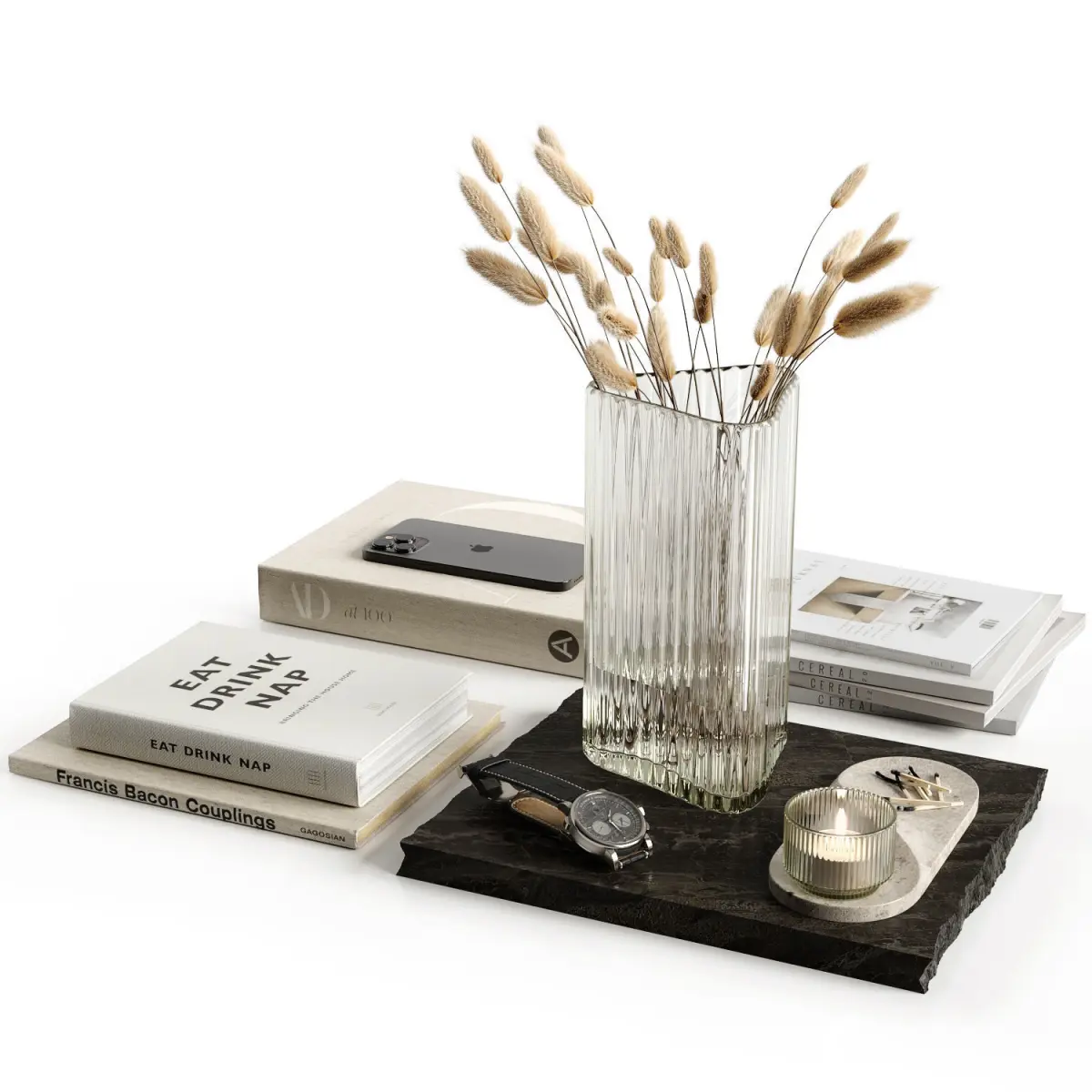 Decorative set with dried flowers in a corrugated vase