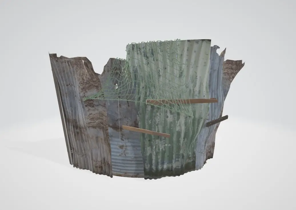 HomeCatalogbroken wall spliced by iron tiles Low-poly 3D model