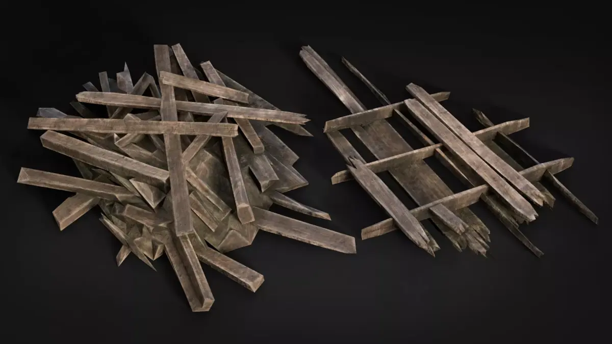 This pack includes 29 high-quality broken wood debris assets designed for abandoned, post-apocalyptic, or destruction scenes. You’ll find wooden planks, debris piles, crates, pallets, and scattered splinters that can be freely combined to create unique damaged environments.