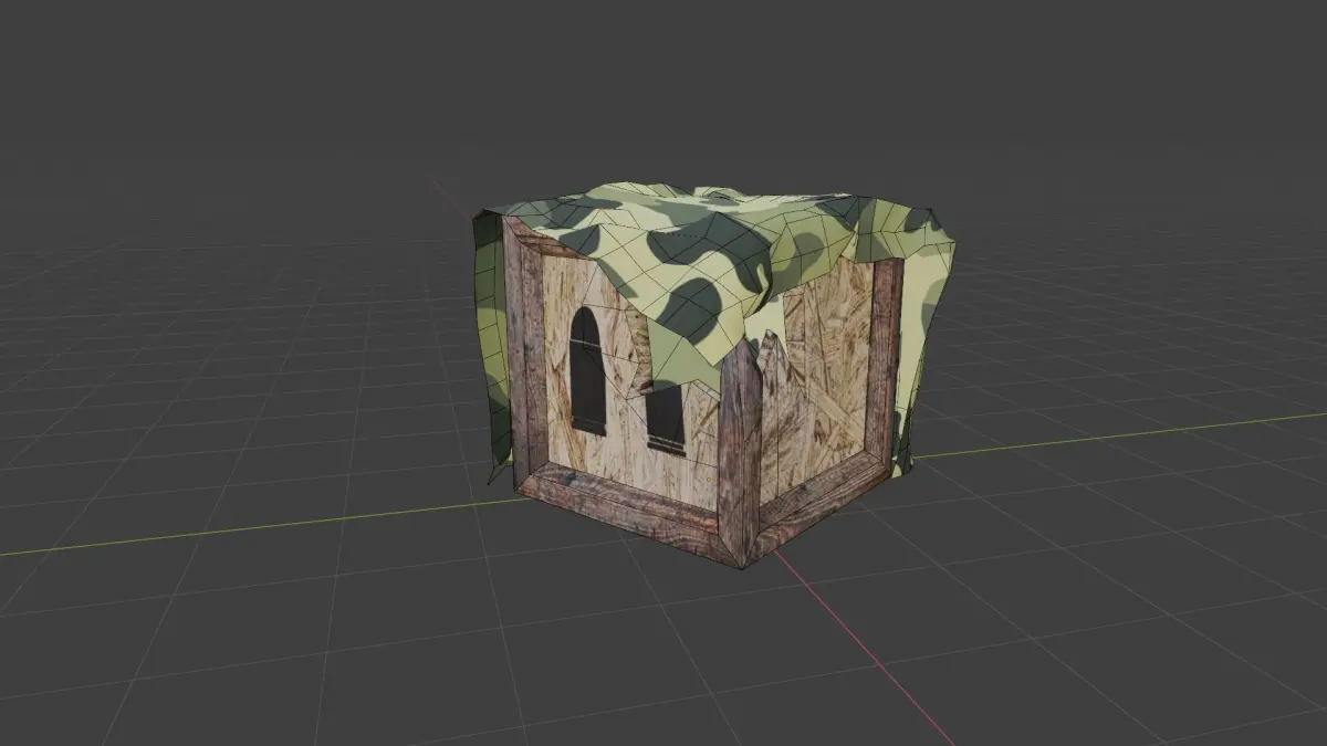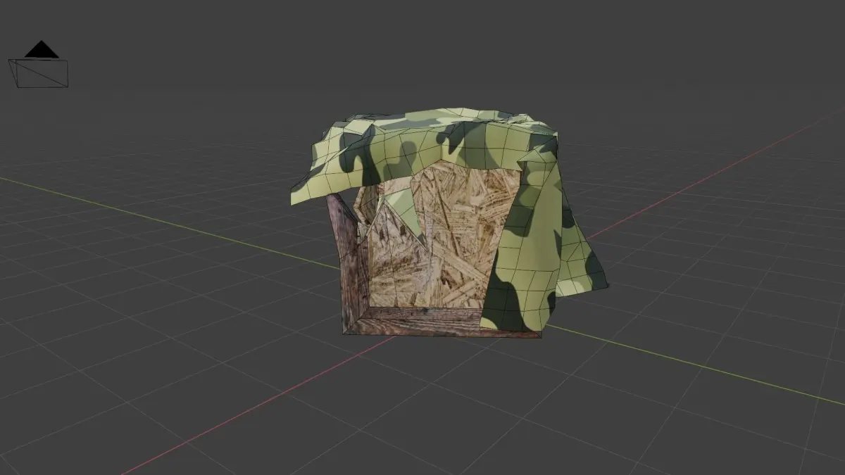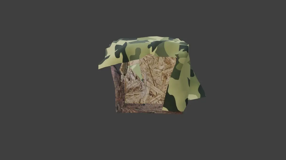 This is a broken wooden military box covered in camouflage fabric, ready to use in any game engine.