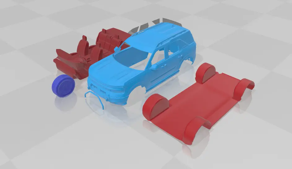 This 3D model captures the bold design of the Bronco Sport 2025, divided into separate STL parts for a detailed printing and assembly experience. Each part showcases the distinctive features of the Bronco Sport, making it perfect for model enthusiasts looking to recreate the vehicle's rugged aesthetic and intricate details.