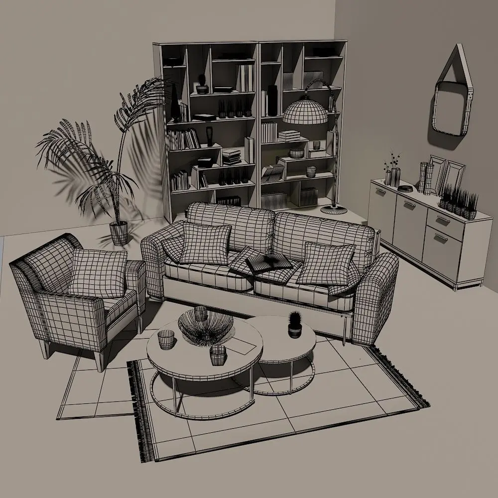 HomeCatalogBronx living room with furniture and bookshelves 3D model