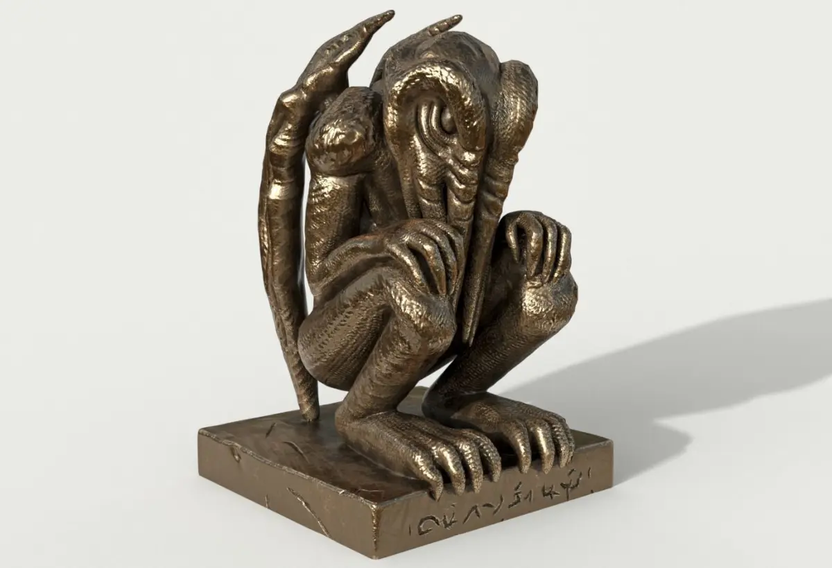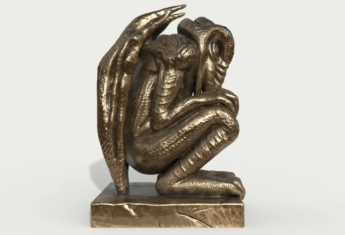 Bronze statuette of an ancient deity.Used programs - zbrush, adobe substance 3D painter and photoshop.