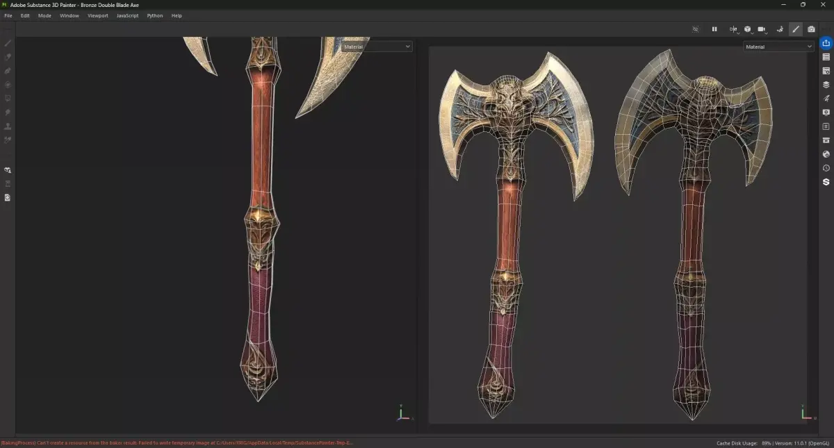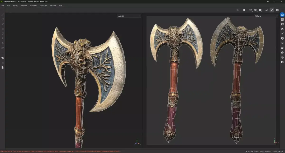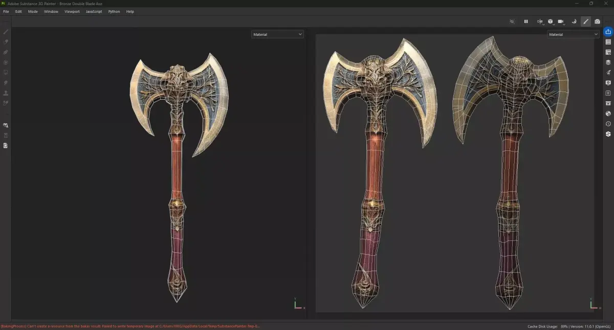 Bronze Double Blade Axe is a stylized fantasy weapon featuring symmetrical curved blades with intricate ornamental engravings and a detailed bronze head. The elegant double-blade silhouette combined with engraved metallic patterns and a wooden handle gives the weapon a strong medieval-fantasy aesthetic.This model is designed as a game-ready asset, optimized with efficient topology and baked high-poly details. The model uses PBR textures created in Substance Painter, allowing it to work well in modern real-time engines like Unreal Engine and Unity.Perfect for fantasy RPG games, cinematic scenes, medieval environments, or weapon collections.