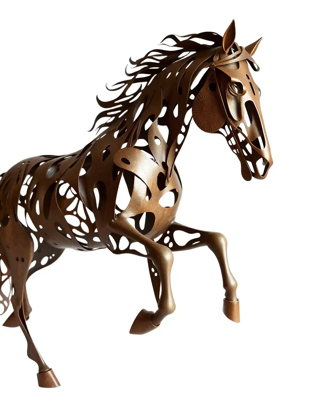 The Bronze Filigree Horse model pack features a stunning openwork design, capturing the elegance of a horse in motion. Perfect for artistic visualizations, interiors, or as a statement piece in virtual galleries. Each model has 3 levels of detail: low-poly (1000 triangles for mobile), middle-poly (10,000 triangles for environment), and high-poly (100,000 triangles). The models are compatible with production rendering engines like 3ds Max, Maya, and Blender, as well as game engines such as Unity and Unreal, offering flexibility for various projects. The PBR textures include Diffuse, NormalMap, and reflection/roughness/metallic, ensuring high-quality visuals. Accurately unwrapped with no overlapping UV, all textures are 4096*4096 in size. If you enjoy this model, please like and leave a comment!