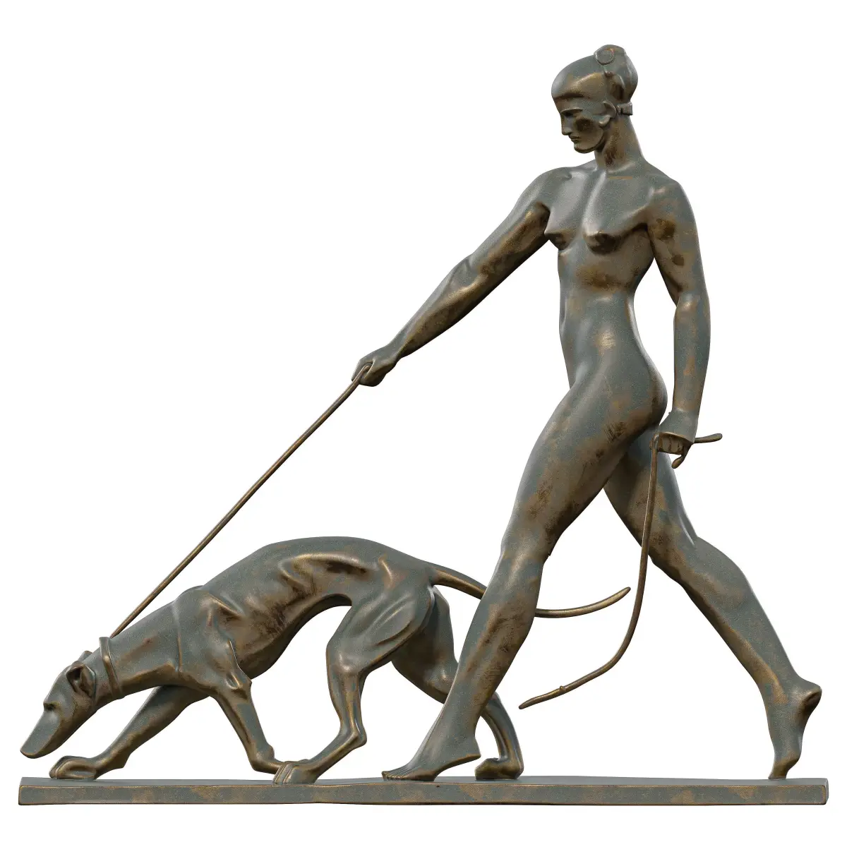 HomeCatalogBronze Human Walking Dog Sculpture Low-poly 3D model