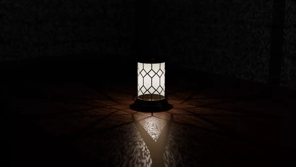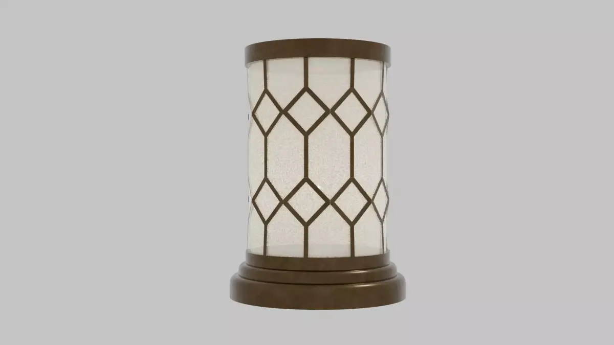This elegant tabletop wax warmer combines vintage lantern styling with modern detailing. It features a sculpted bronze base and matching cap that hold a molded wax tray, while a milk-glass shade sits at the center to diffuse warm, soft light. Surrounding the shade is a decorative metal cage built from intersecting diamond shapes and vertical lines, giving the piece a refined, old-world character perfect for cozy interiors, rustic scenes, or decorative tabletop renders.
