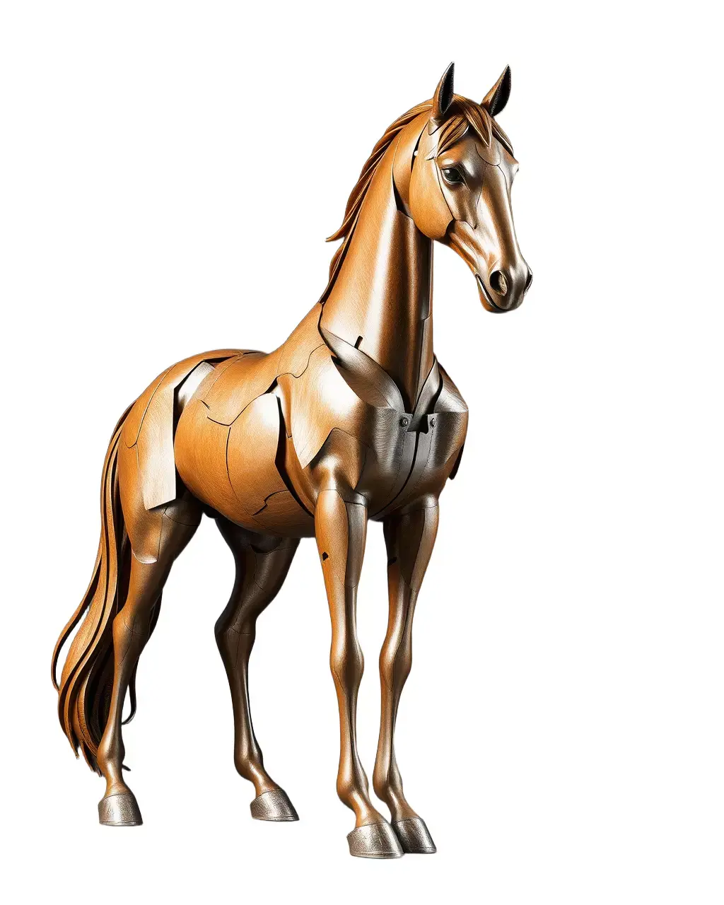 This Bronze Mechanic Horse model pack offers a stunning representation of a mechanical horse with intricate detailing and a metallic bronze finish. It is ideal for use in cinematic animations, games, and AR/VR applications, exhibitions, and educational purposes, showcasing a futuristic blend of nature and technology. Each model has 3 levels of detail: low-poly (1000 triangles for mobile), middle-poly (10,000 triangles for environment), and high-poly (100,000 triangles), which allows for the use of this model in production rendering (such as 3ds Max, Maya, Cinema4D, Blender, Vray/Corona/Cycles, and all others), game engines (Unity and Unreal compatible), and interactive presentations, providing a choice of detail based on the LOD System principle. The model's textures are PBR, Diffuse, NormalMap, and reflection/roughness/metallic, which are suitable for any modern rendering engine. All models are accurately unwrapped and have no overlapping UVs. All textures are 4096*4096 in size. If you like the model, please like and leave a comment.