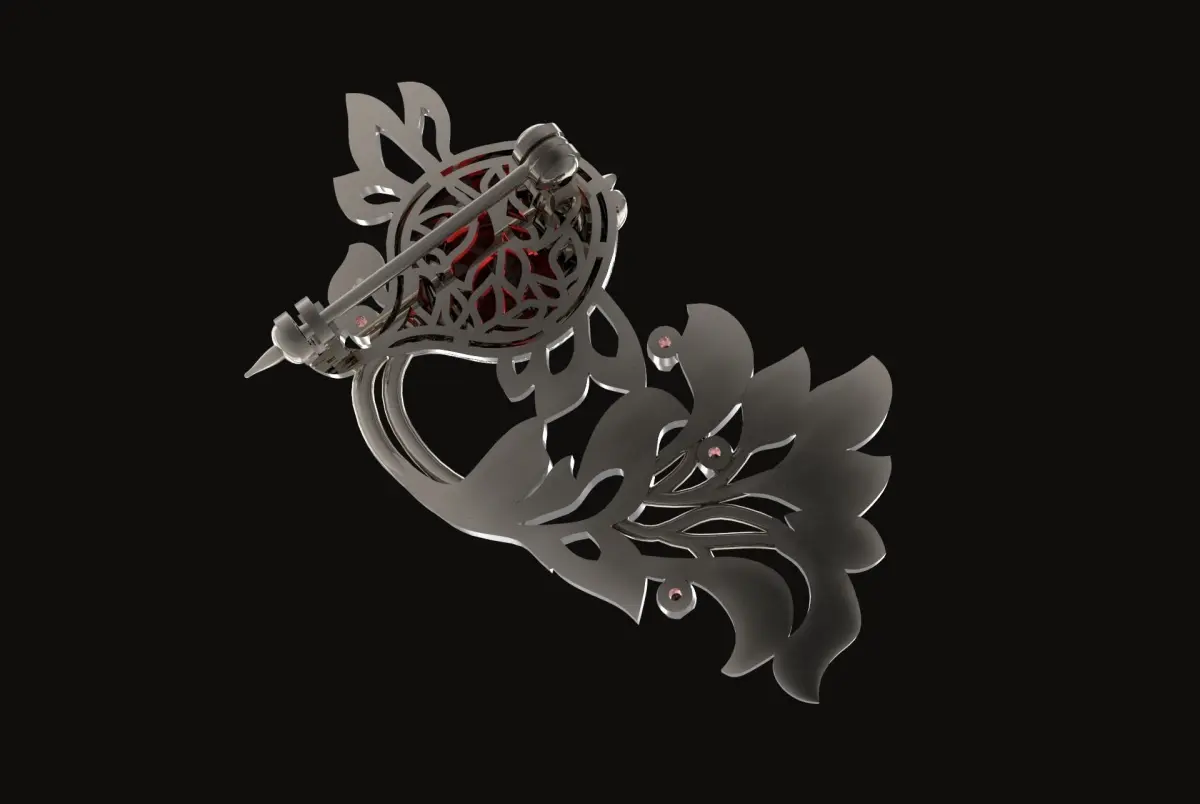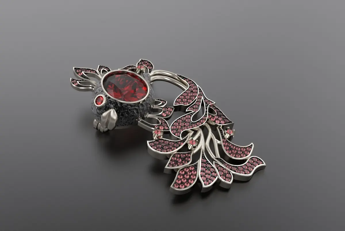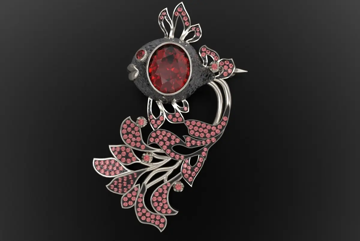 Brooch Gold Fish with Gems 3D print model