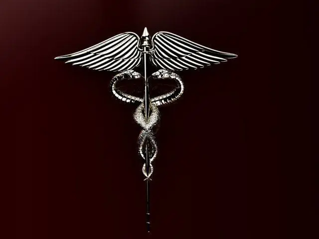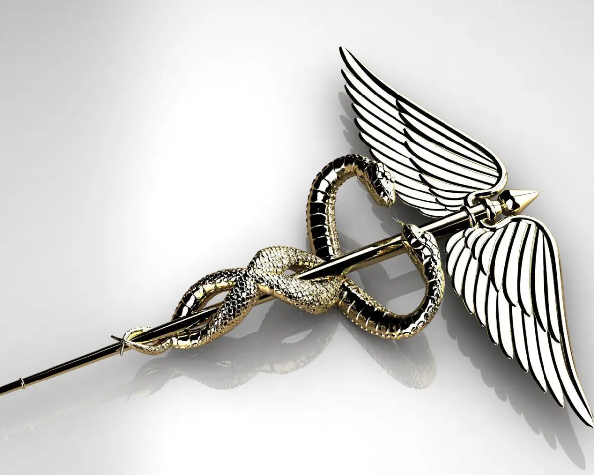 brooch medical symbol snake wings