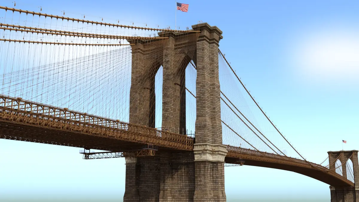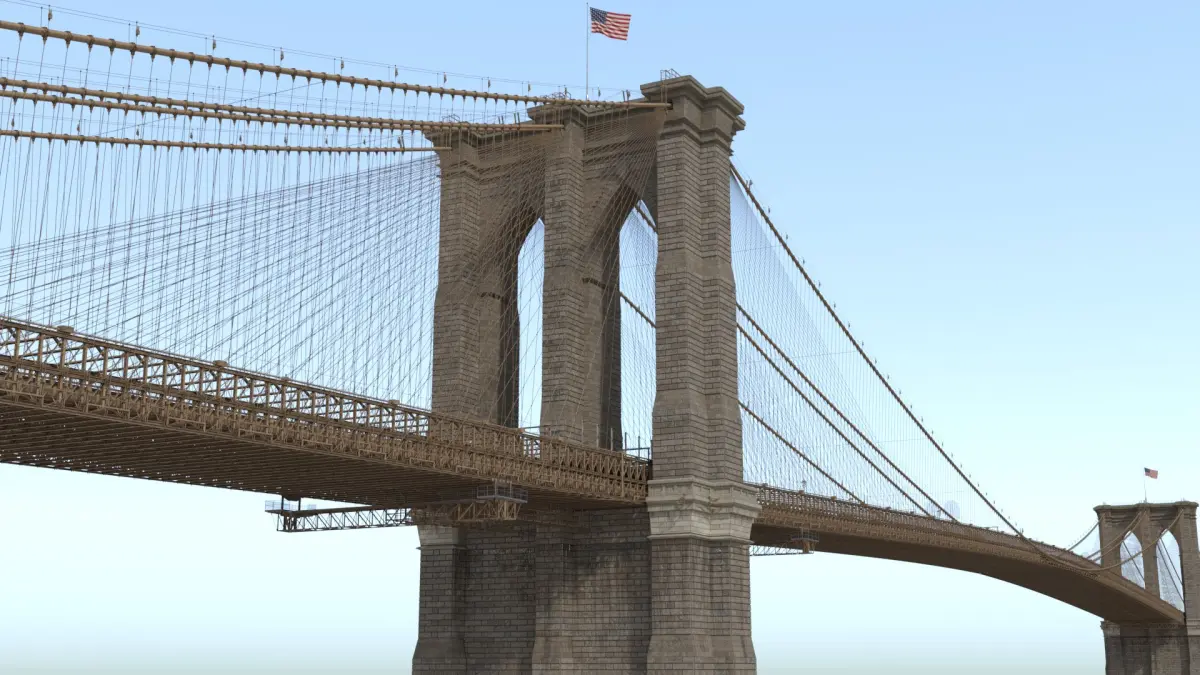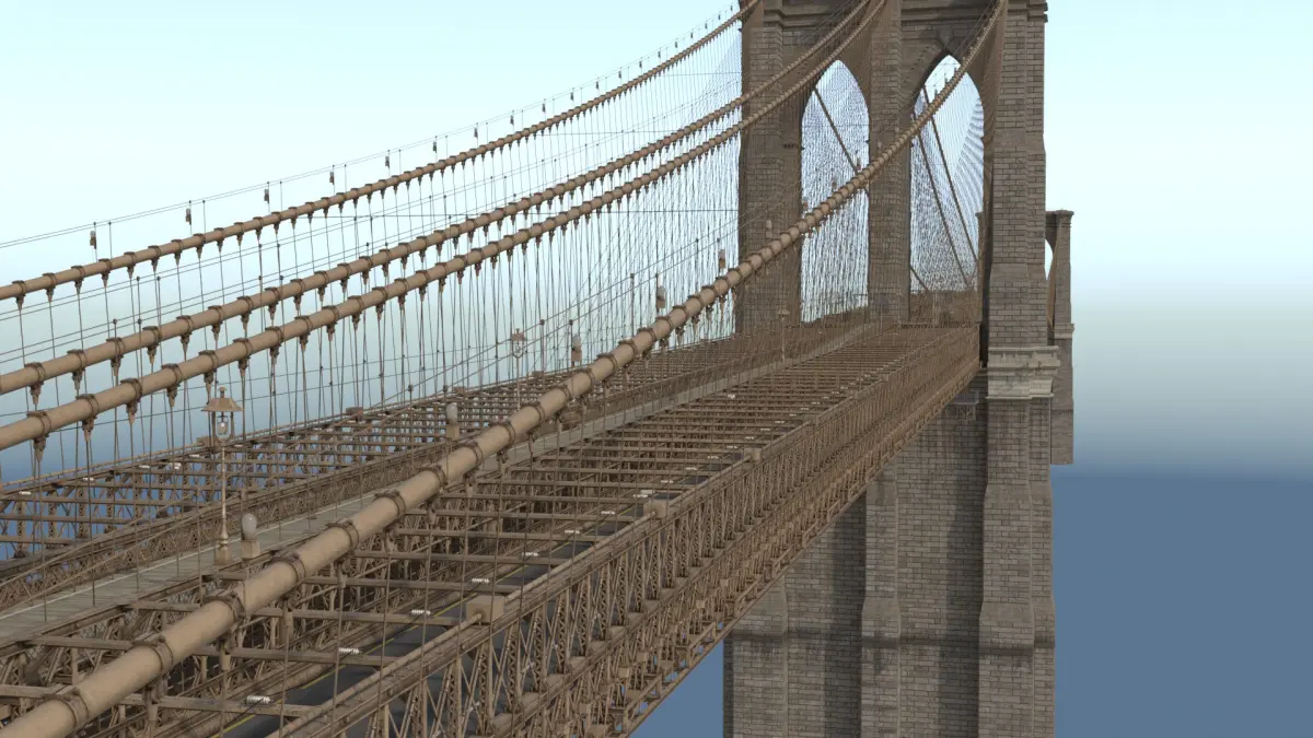 In my collection is also optimized model of Brooklyn Bridge without modeled bolts and screws (only in displace map)