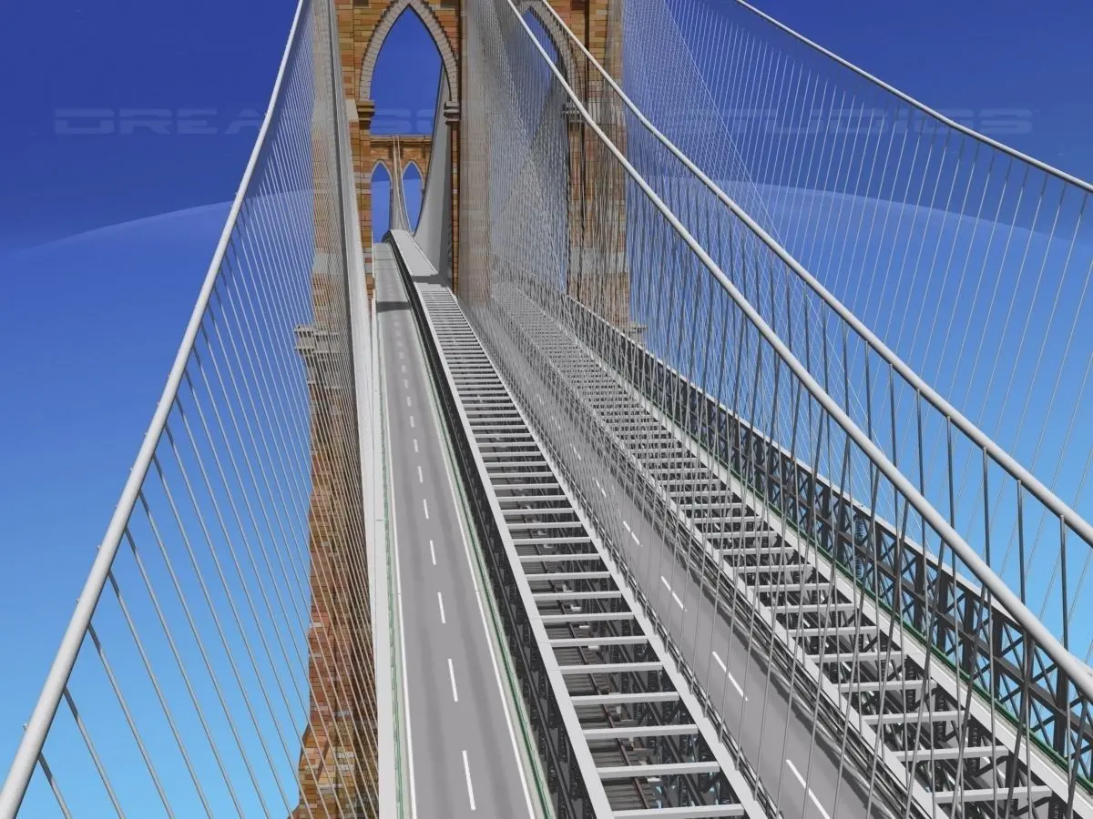 This model is a very realistic resemblance to the Brooklyn bridge and makes an excellent video or animation project for scenes and backgrounds.