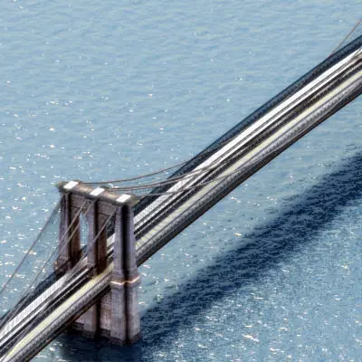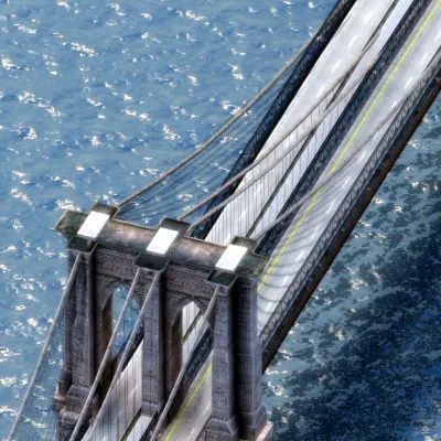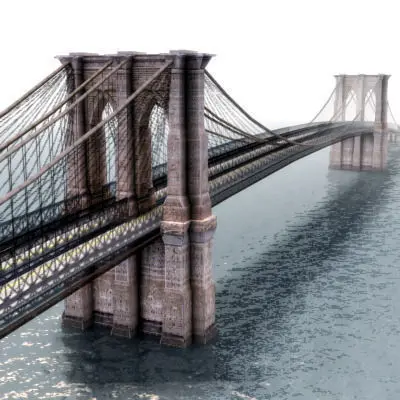 Detailed model of the Brooklyn Bridge, NY, US.