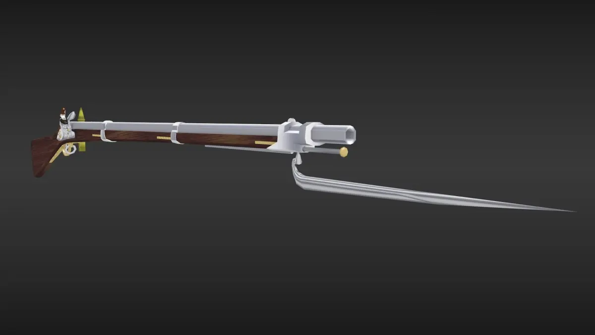 An old British flintlock muskeet. This musket was used in the era of the expansion of the British Empire and acquired symbolic importance at least as significant as its physical importance. It was in use for over a hundred years with many incremental changes in its design. These versions include the Long Land Pattern, the Short Land Pattern, the India Pattern, the New Land Pattern Musket and the Sea Service Musket.