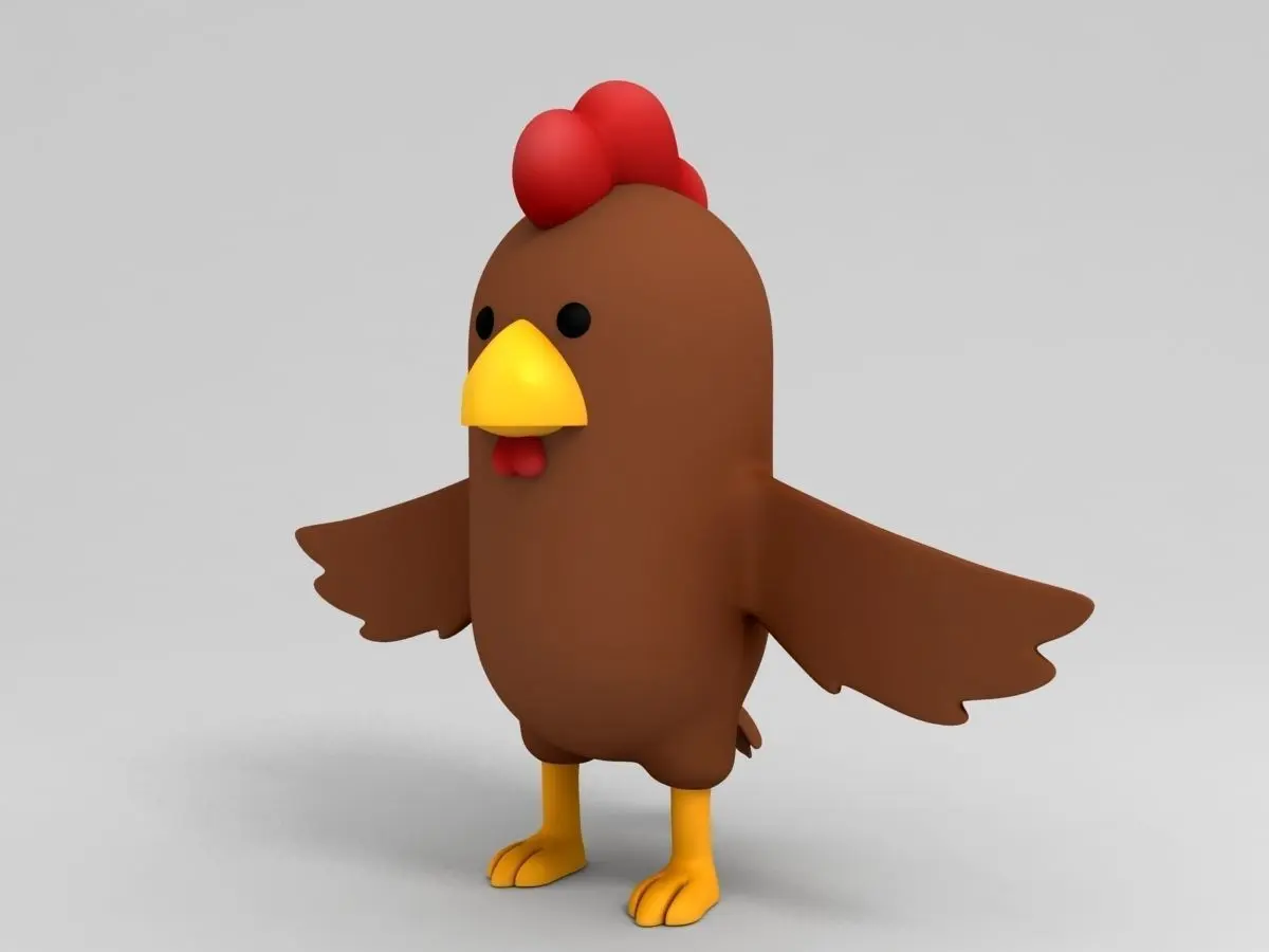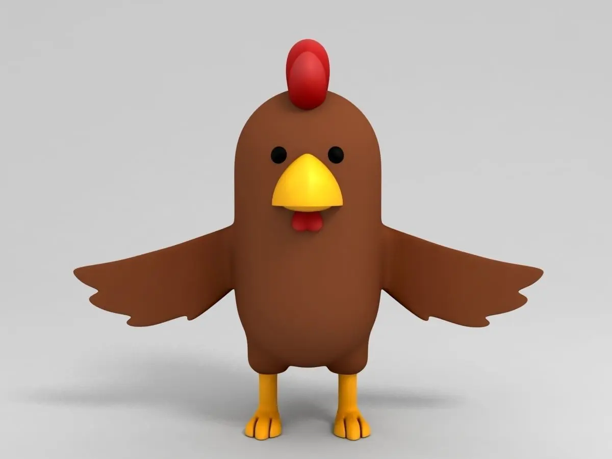 Brown Chicken character 3d model in cartoon style.