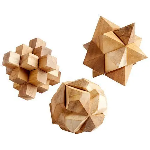 - Celebrate your love of puzzles of every kind with this intriguing wood puzzle sculpture. Offering geometric flair, the wood piece features a natural finish and is sure to catch the eye when perched on a side table or bookcase.