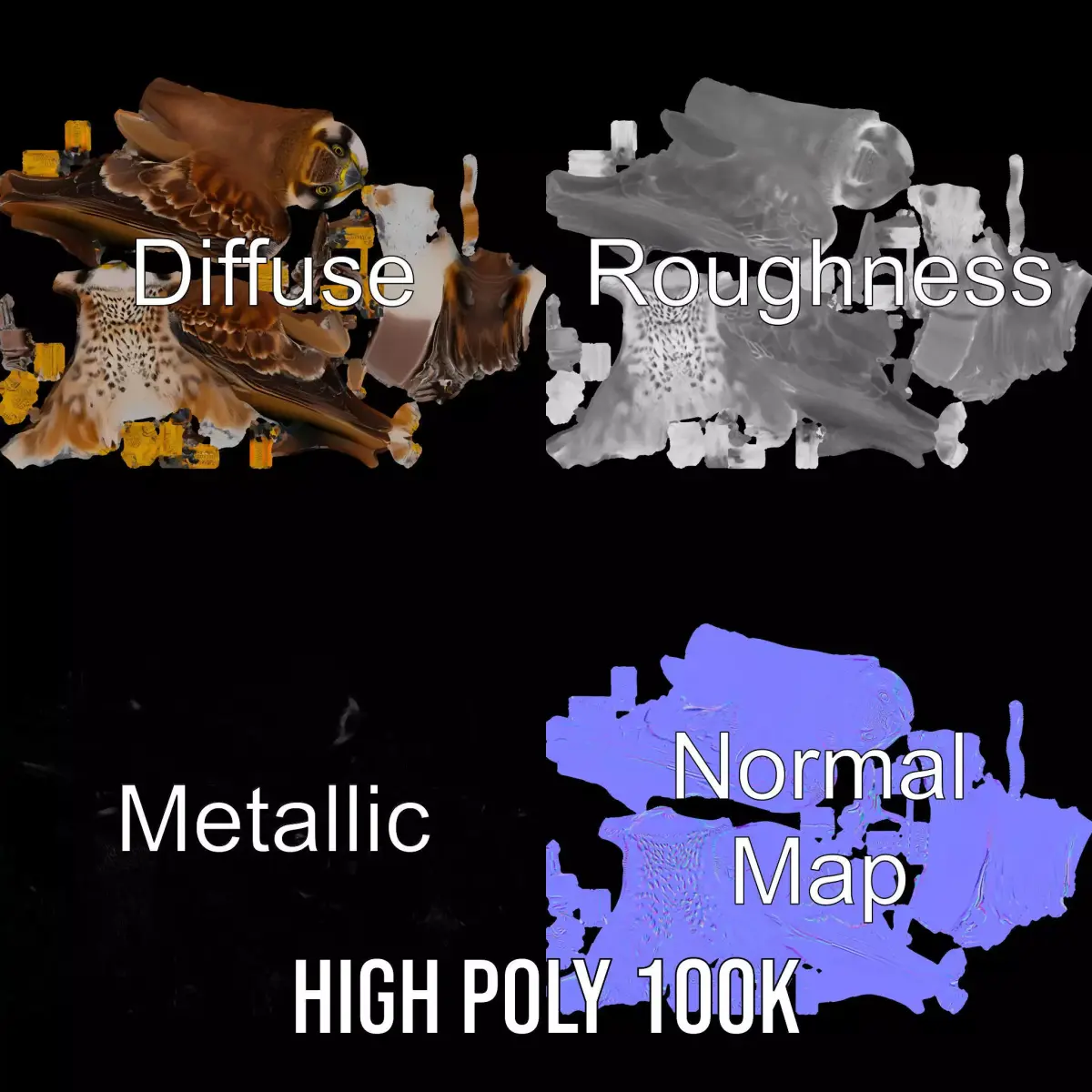 This Brown Kestrel model pack offers a detailed and realistic representation of the bird, capturing its distinct features and colors perfectly. Ideal for wildlife-focused animations, educational projects, and nature reserves' interactive displays. Each model has 3 levels of detail: low-poly(1000 triangles for mobile), middle-poly(10 000 triangles for environment), and high-poly(100 000 triangles), which allows for the use of this model in production rendering(such as 3ds max, Maya, Cinema4d, Blender, Vray/Corona/Cycles and all other), game engines(Unity and Unreal compatible), and interactive presentations, providing a choice of detail based on the LOD System principle. The model's textures are PBR, Diffuse, NormalMap, and reflection/roughness/metallic, which are suitable for any modern rendering engine. All models accurately unwrapped and has no overlapping UV. All textures are 4096*4096 in size. If you find this model useful, please like and leave a comment!