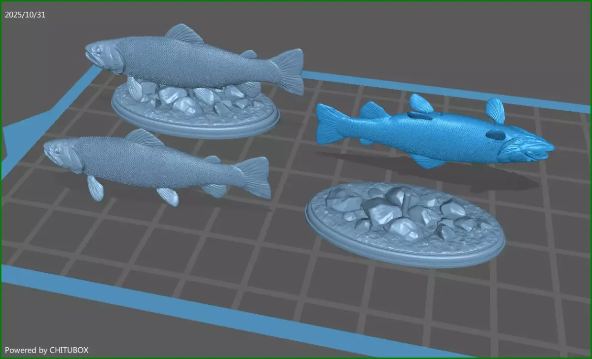 700K STL, OBJ triangulated mesh, Brown trout fish on the base in parts
