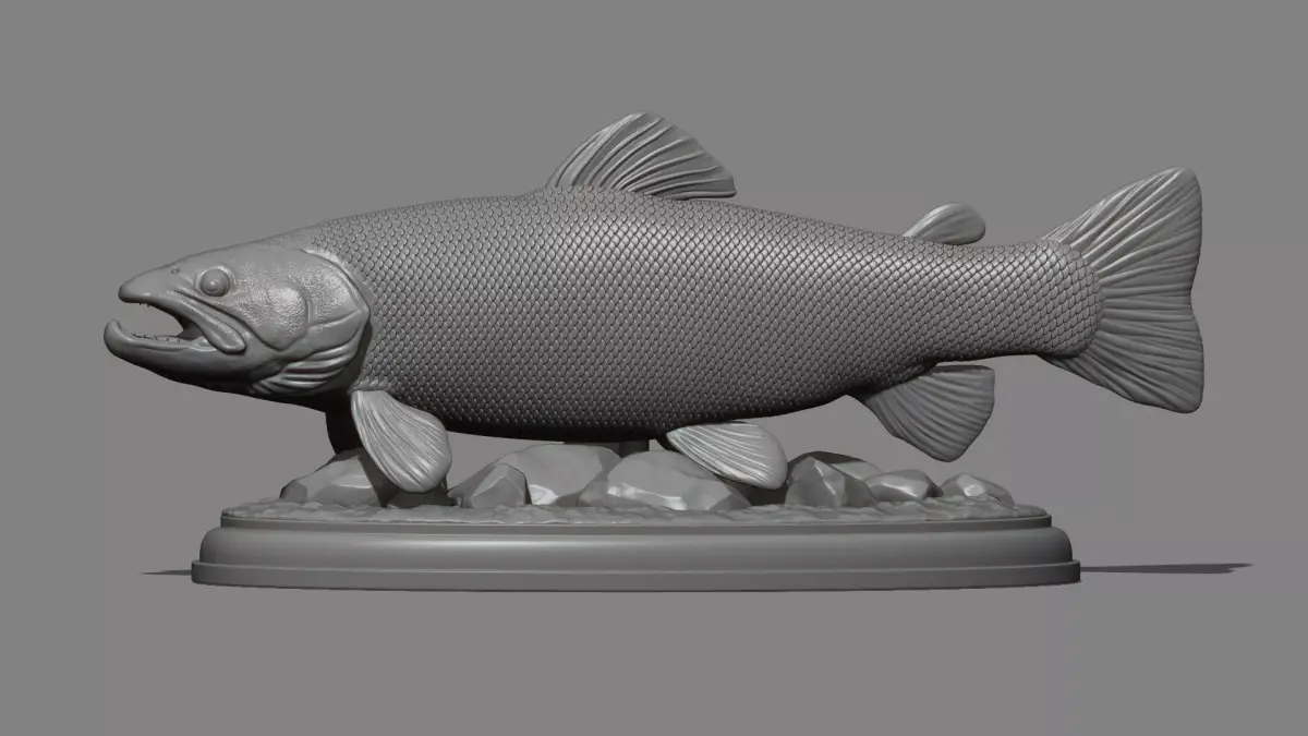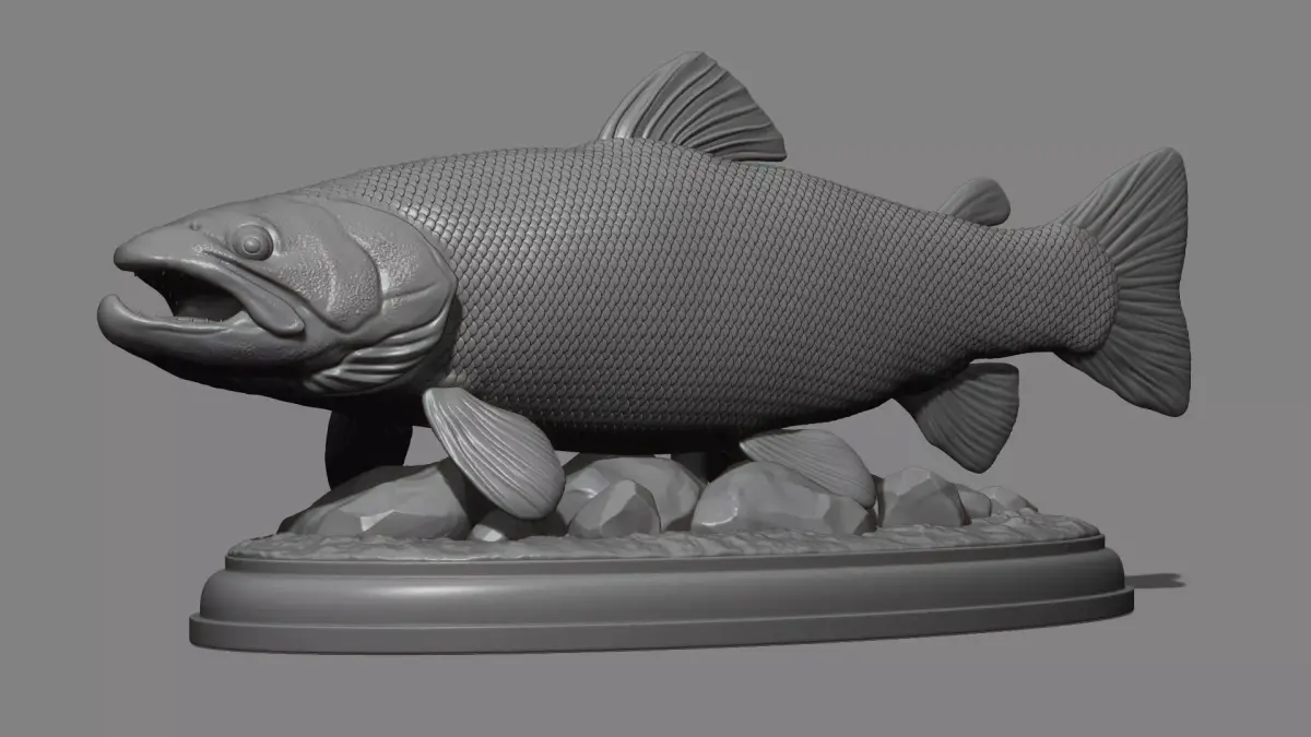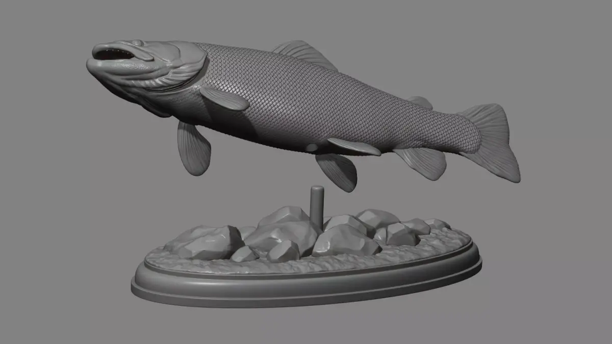 500K STL, OBJ triangulated mesh, Brown trout fish on the base without a base