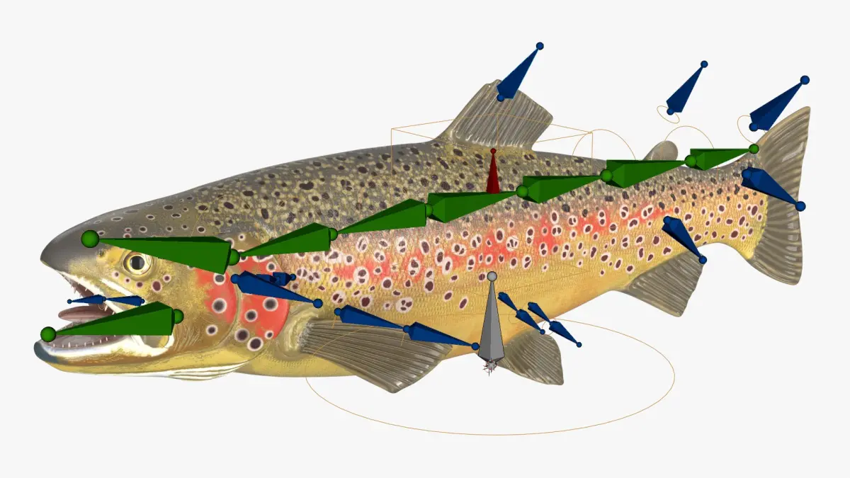 Brown Trout Fish Rigged For Blender is fully rigged and is ready to be animated in Blender. You can easily position it the way you need or animate it the way your project requires. See the screenshots to get an idea of how rigging works. The pose of the model on the render images is an example and can be recreated using rig, it is not initially included into the product.