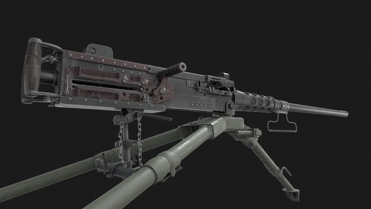 Browning M2HB - Lowpoly model and PBR Textures.Verticies: 87692 Polygons: 44778Formats of models: blend, fbxFormats of textures: pngSets of textures: MetallRoughness, Unreal Engine 44 Texture Sets resolutions: 8192x8192