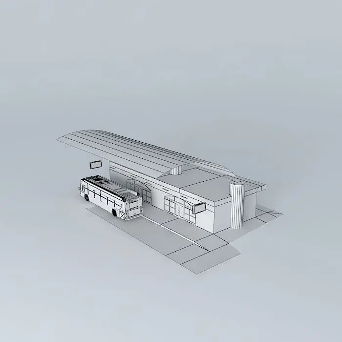 This 3D model was originally created with Sketchup 8 and then converted to all other 3D formats. Native format is .skp 3dsmax scene is 3ds Max 2016 version, rendered with Vray 3.00 This is a BRT terminal for the end of a line. This could also be used as a normal station where the median of a divided highway is very wide. The platform height matches the height of many low floor BRT buses (10"). A curved metal canopy protects the platform from the elements. The station is heated and cooled for maximum passenger comfort while waiting. Monitors facing both outward and inward display the station name to those outside the station and the next bus arrival time/ETA to those inside/on platform.