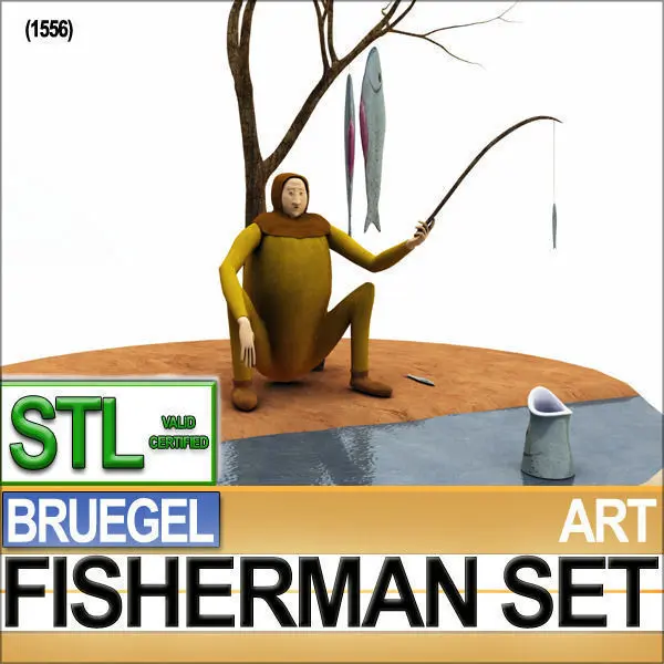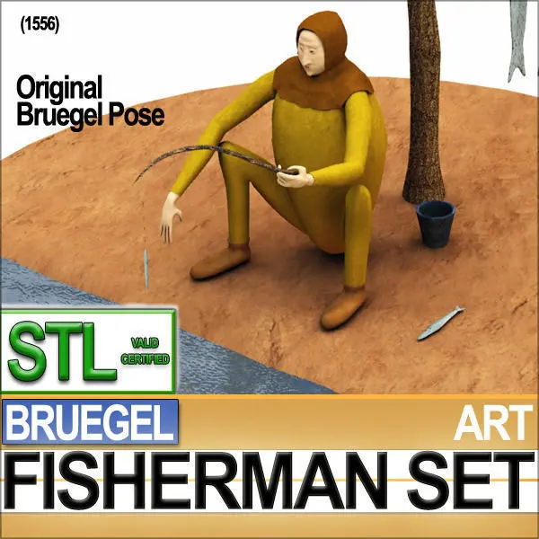 Faithful Reconstruction of Fisherman by famous Flemish painter Pieter Bruegel the Elder, as seen in his famous Black & White Print [1556 & 1557], with tree and hanging fish. STL 3D Print Certified. C4D, 3DS, OBJ, VUE6 to 10!_______________________________________Real World Scale Model [SmartCgArt Real World System]. Quads [C4D; OBJ] & Tris [VUE;3DS; STL].STL Valid Mesh Certified.