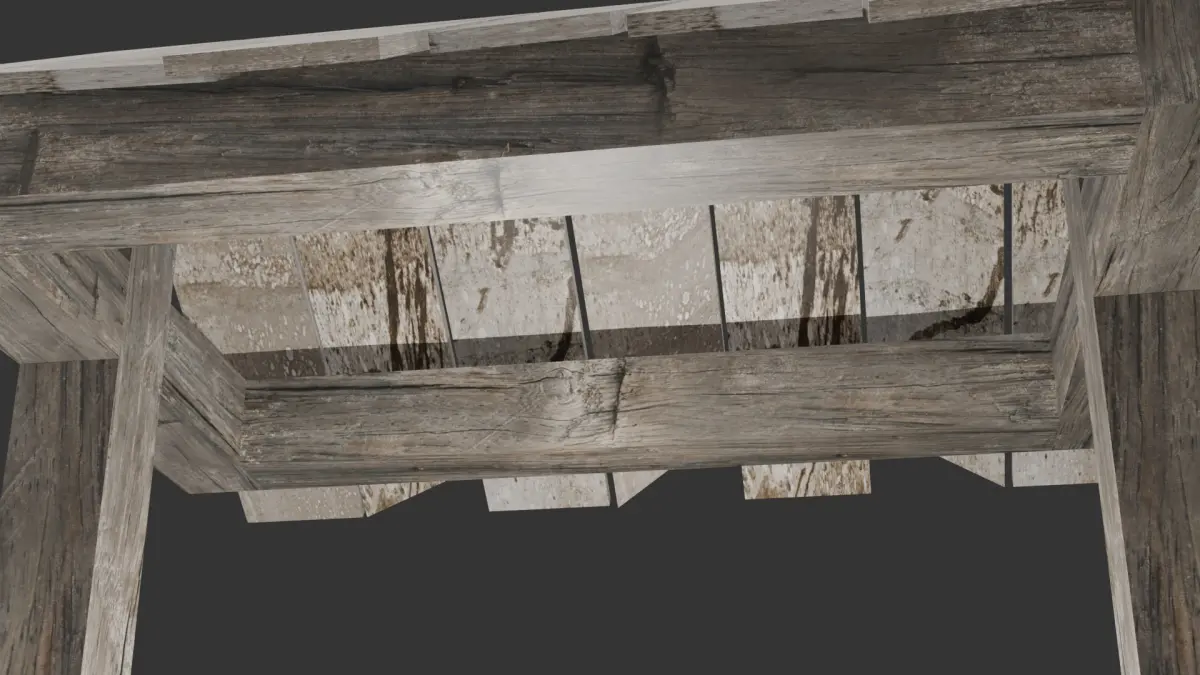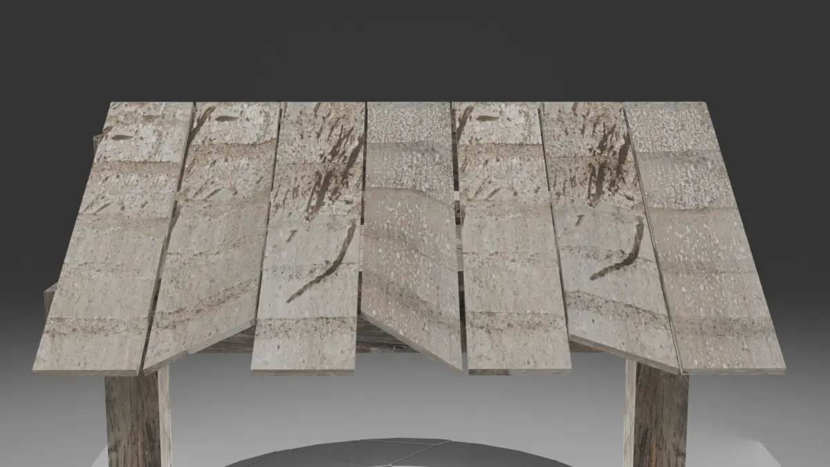 This realistic model of an old well was created using the Cell Fracture addon for the stones, while the water was designed with a custom shader (adjusting three values) and the Ocean modifier to simulate waves. The wooden roof was quickly built, leveraging experience from a previous project. This model is perfect for scenes requiring historical or rustic elements.