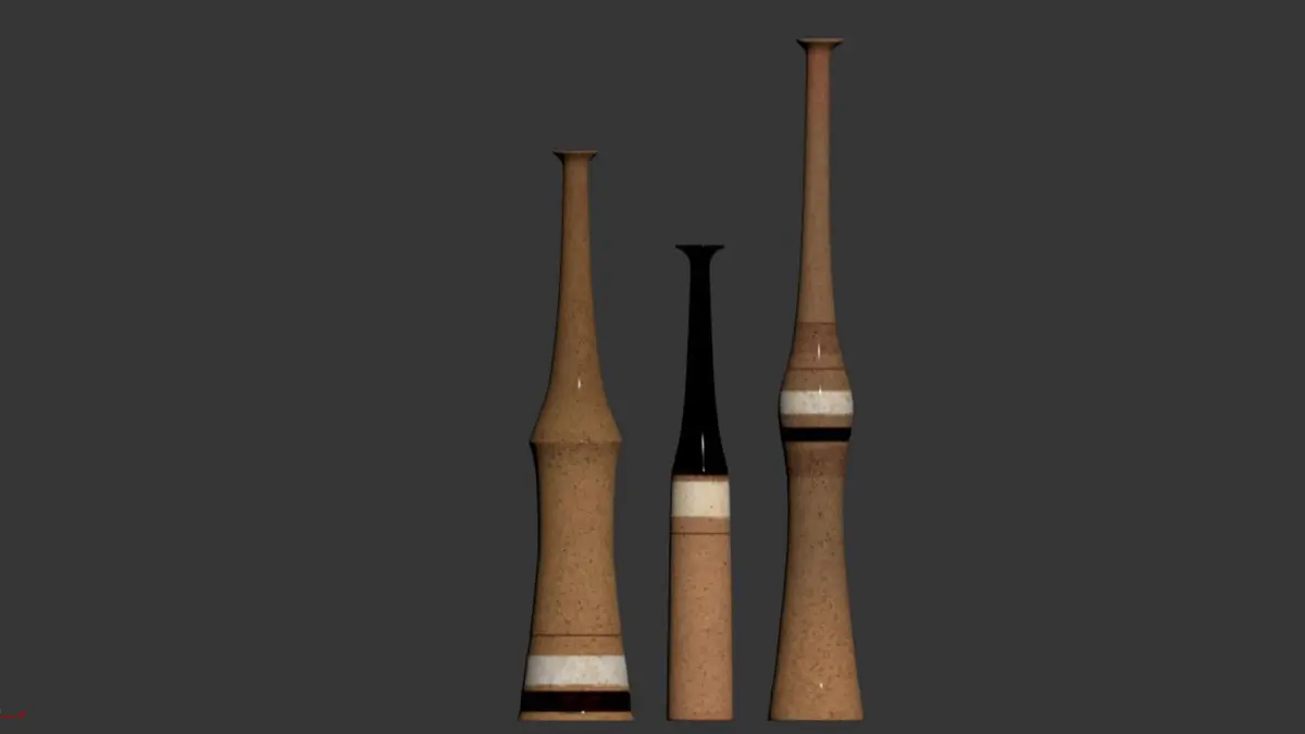 Bruno Gambone Set of 3 Bottles Ceramic Vases 3D model