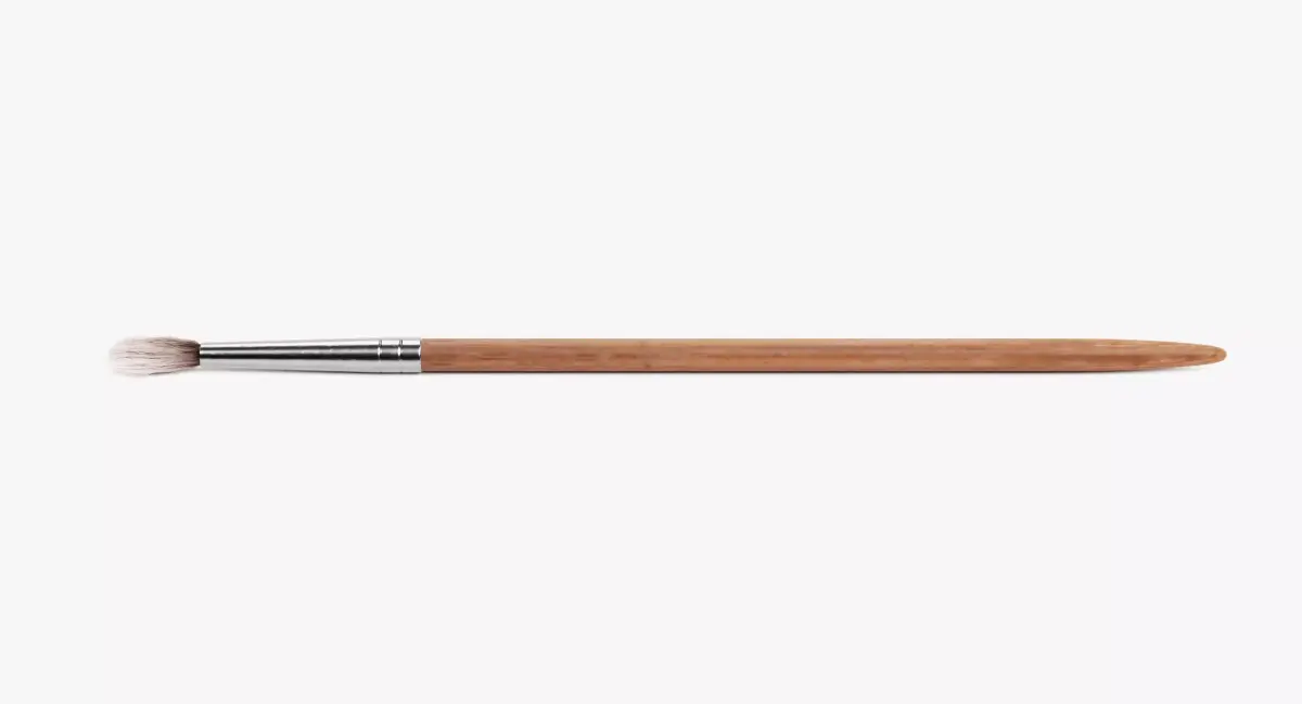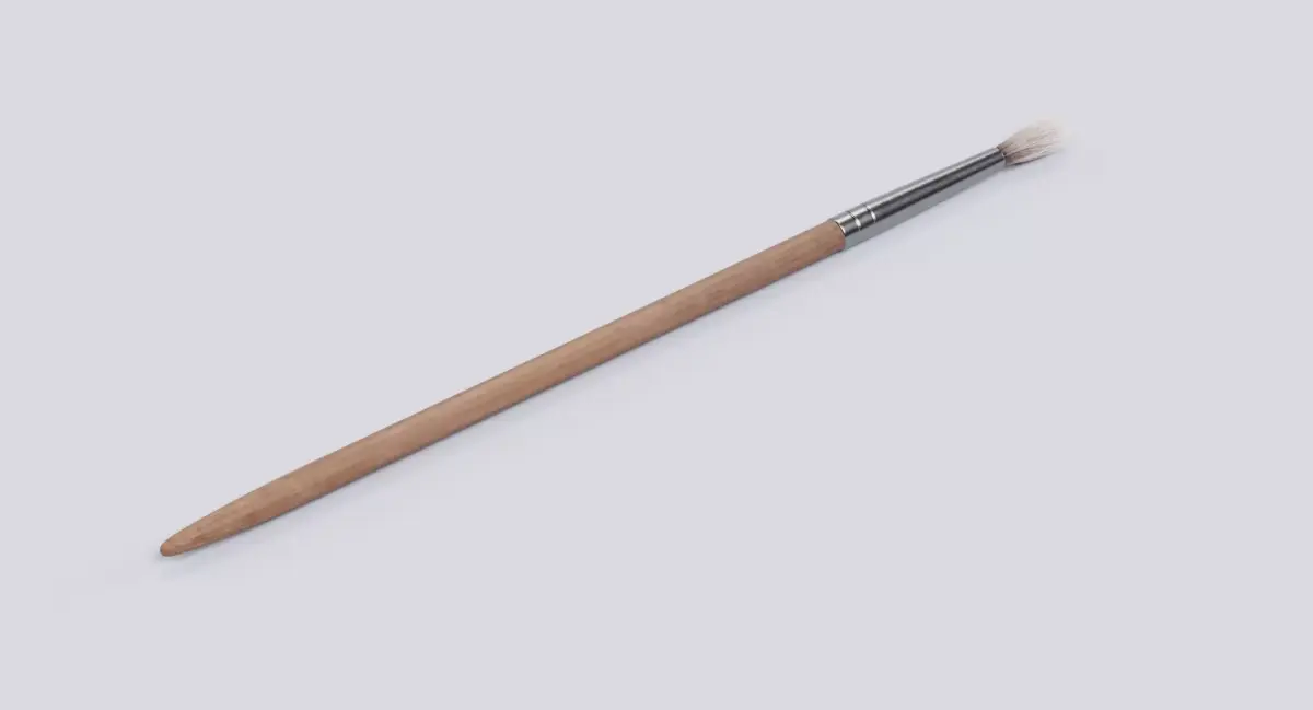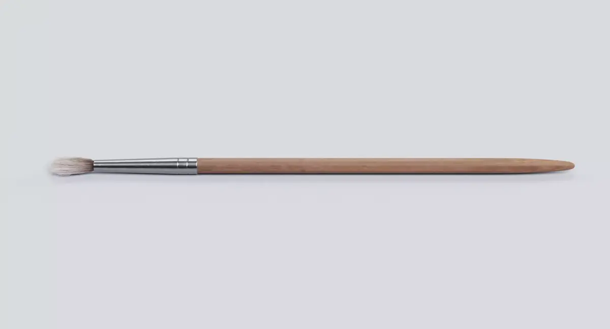 A realistic filbert paint brush with a slim wooden handle and a softly rounded bristle shape that blends precision with organic flow. The metal ferrule and curved bristle profile create a distinctive visual identity that integrates naturally into artistic, product, and lifestyle scenes. Subtle material variation and refined structural detail give the tool a balanced presence suitable for close-up compositions and creative setups.