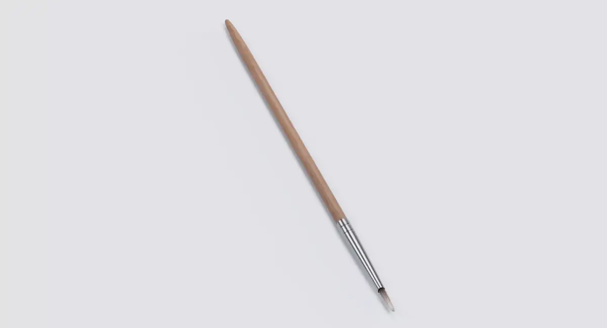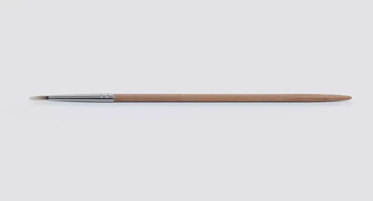 A realistic round paint brush with a slim elongated form and natural wooden handle, designed with clear proportions and subtle material character. The round bristle shape gives the tool a distinct visual identity that fits naturally into artistic, product, and lifestyle scenes, while refined surface detail supports convincing close-up compositions.