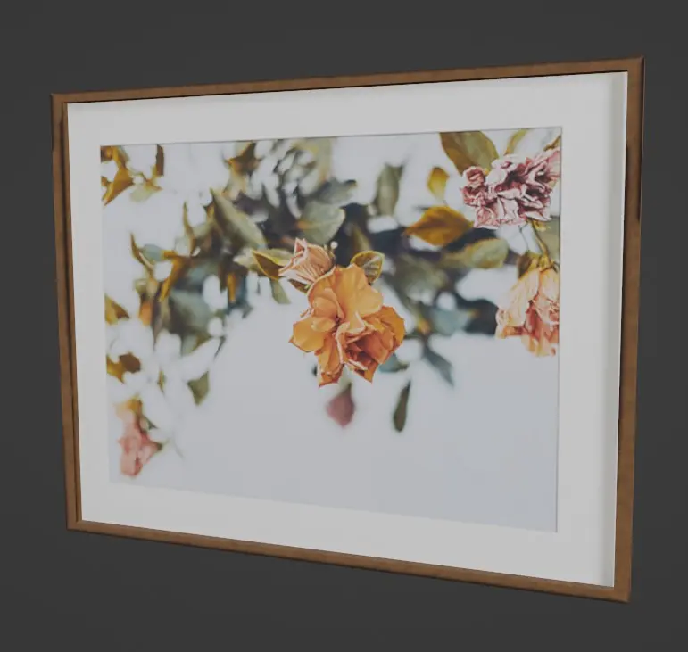 A realistic 3D model of a Brushed Antique Bronze Wall Picture Frame, designed for interior design visualizations, digital artwork displays, and product showcase renders. This elegant frame features a brushed bronze finish with subtle weathering and wear patterns, offering a classic yet timeless look. Perfect for any vintage or contemporary room setting, this frame is ideal for holding artwork or photographs in modern home or office scenes.