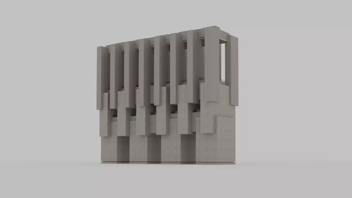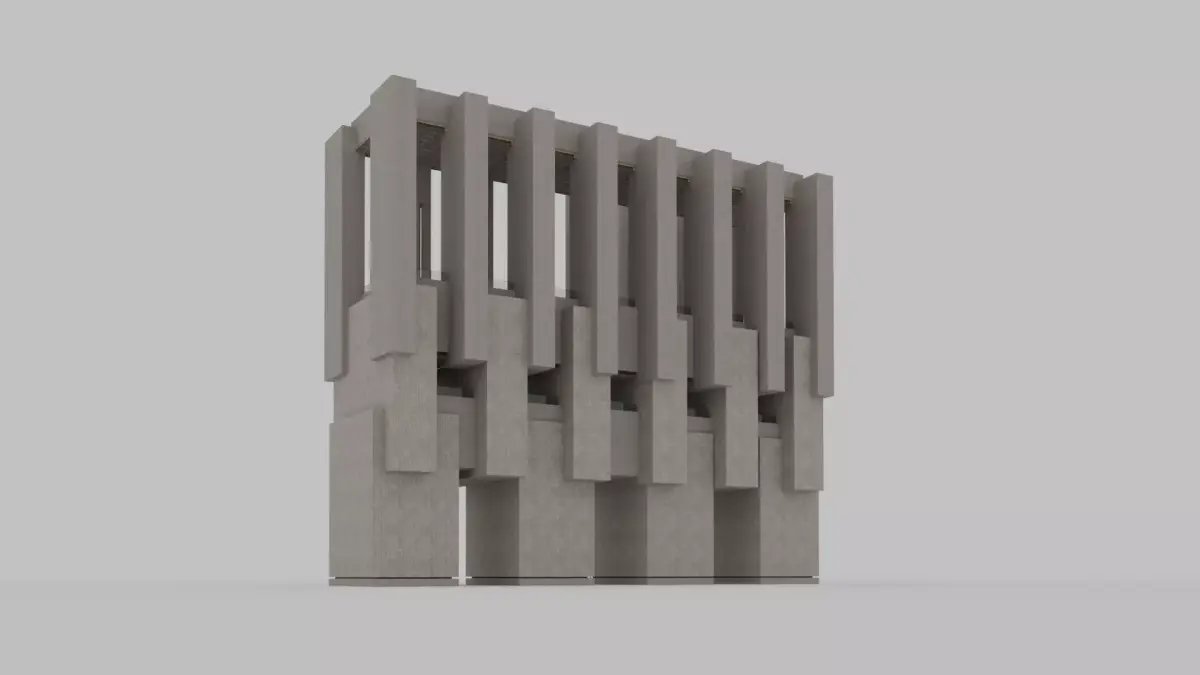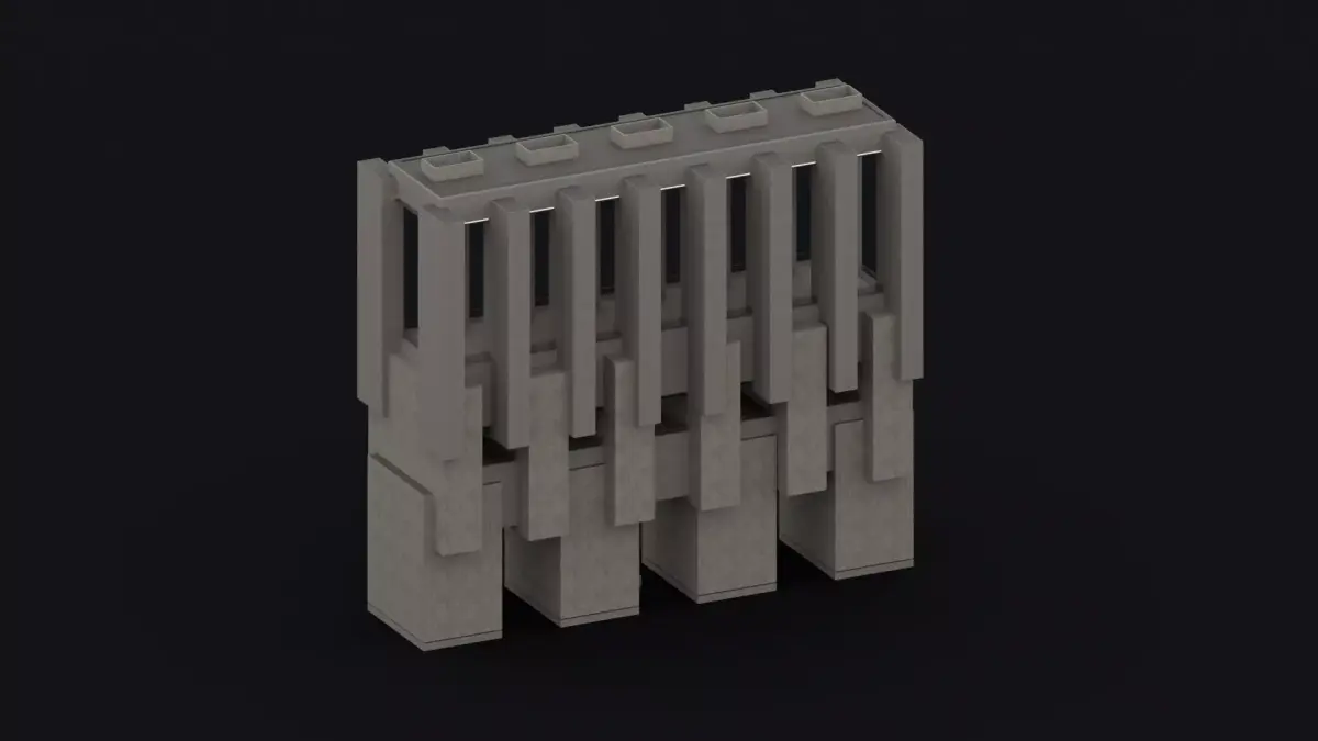- Modular Brutalist building with full exterior and interior. World scale. Designed for urban, dystopian, or architectural projects.