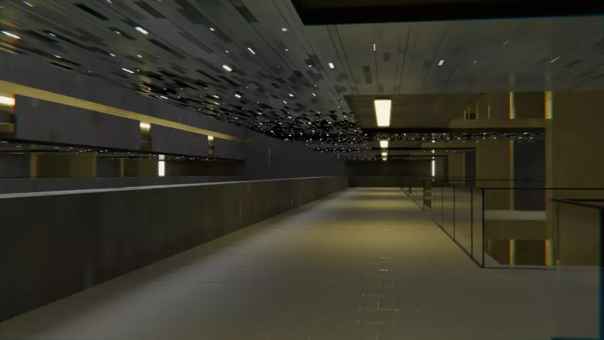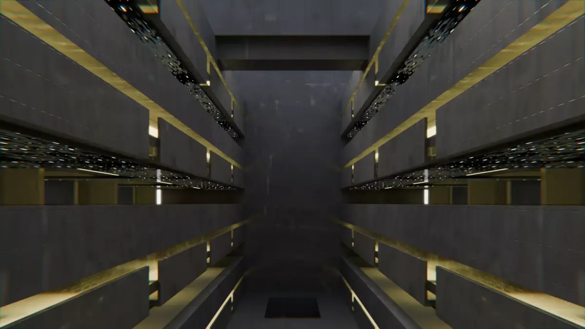 Modular Brutalist building with full exterior and interior. World scale. Designed for urban, dystopian, or architectural projects.