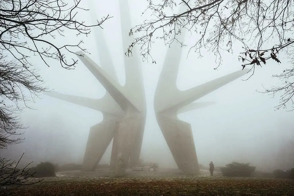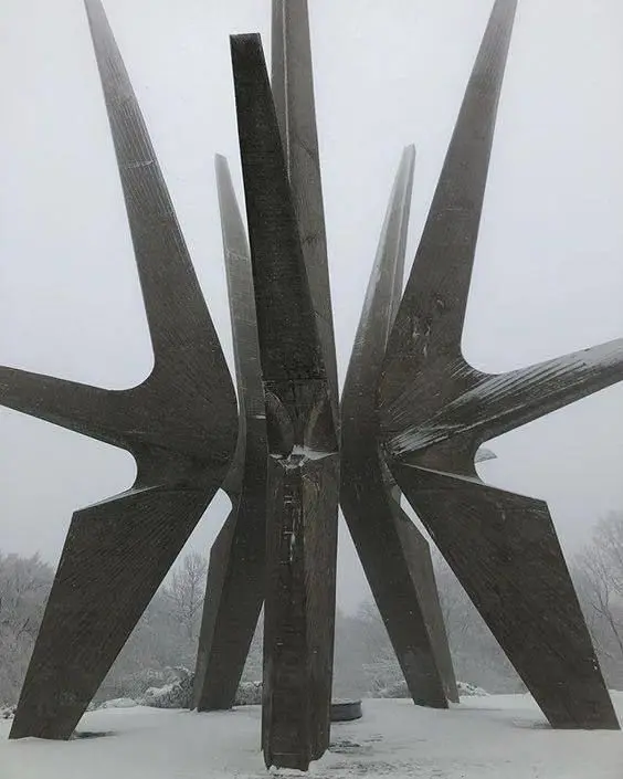 It is an optimized low-poly 3D model of a sculpture that was in the former Yugoslavia today in Serbia, created in the Soviet era in brutalist style.