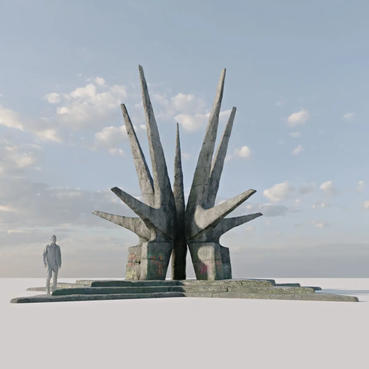 PBR model of a concrete monument based on a brutalist architecture from Soviet era and post-war Yugoslavia. This particular one is based on Kosmaj monument (Serbia).This model is modeled and sculpted using 3dsmax and Zbrush. Textured using Substance Painter. Preview images are rendered in Corona and Vray, but there are Marmoset previews as well so you can check out the model more closely.