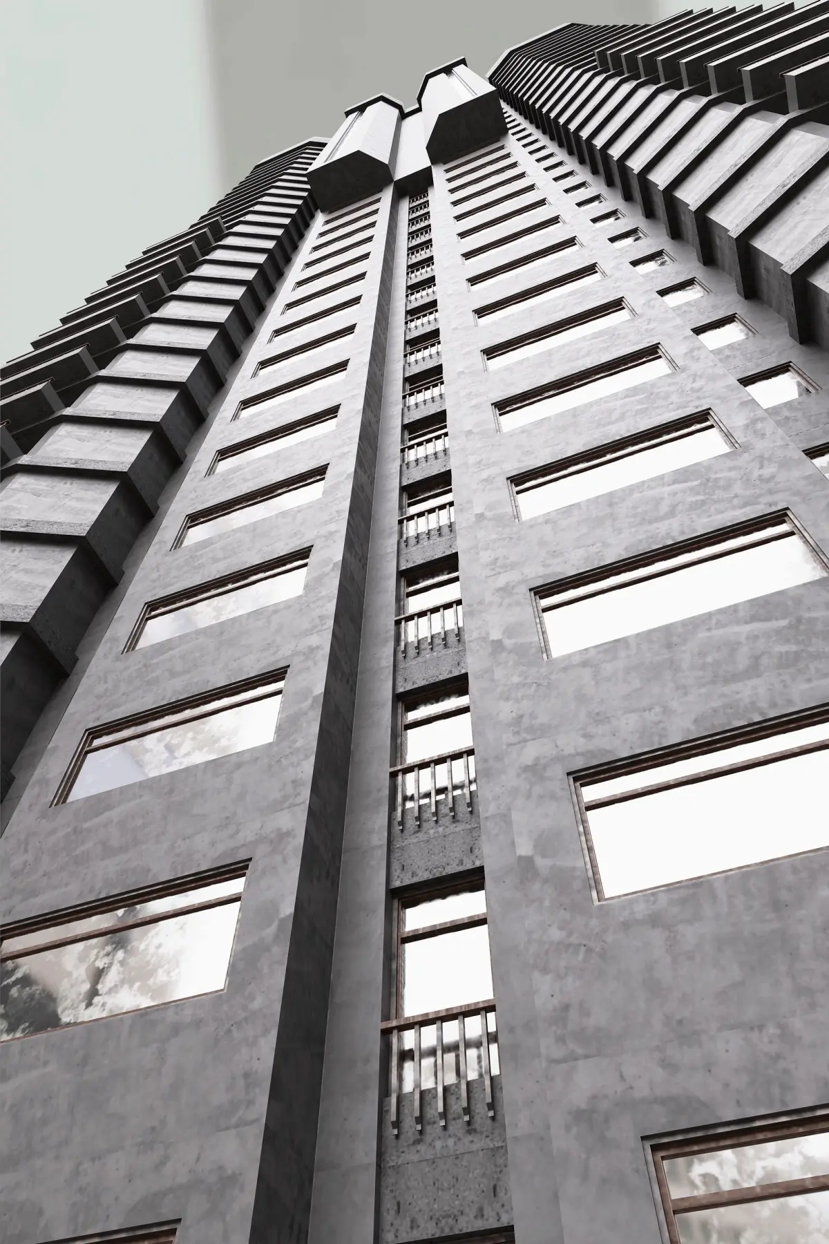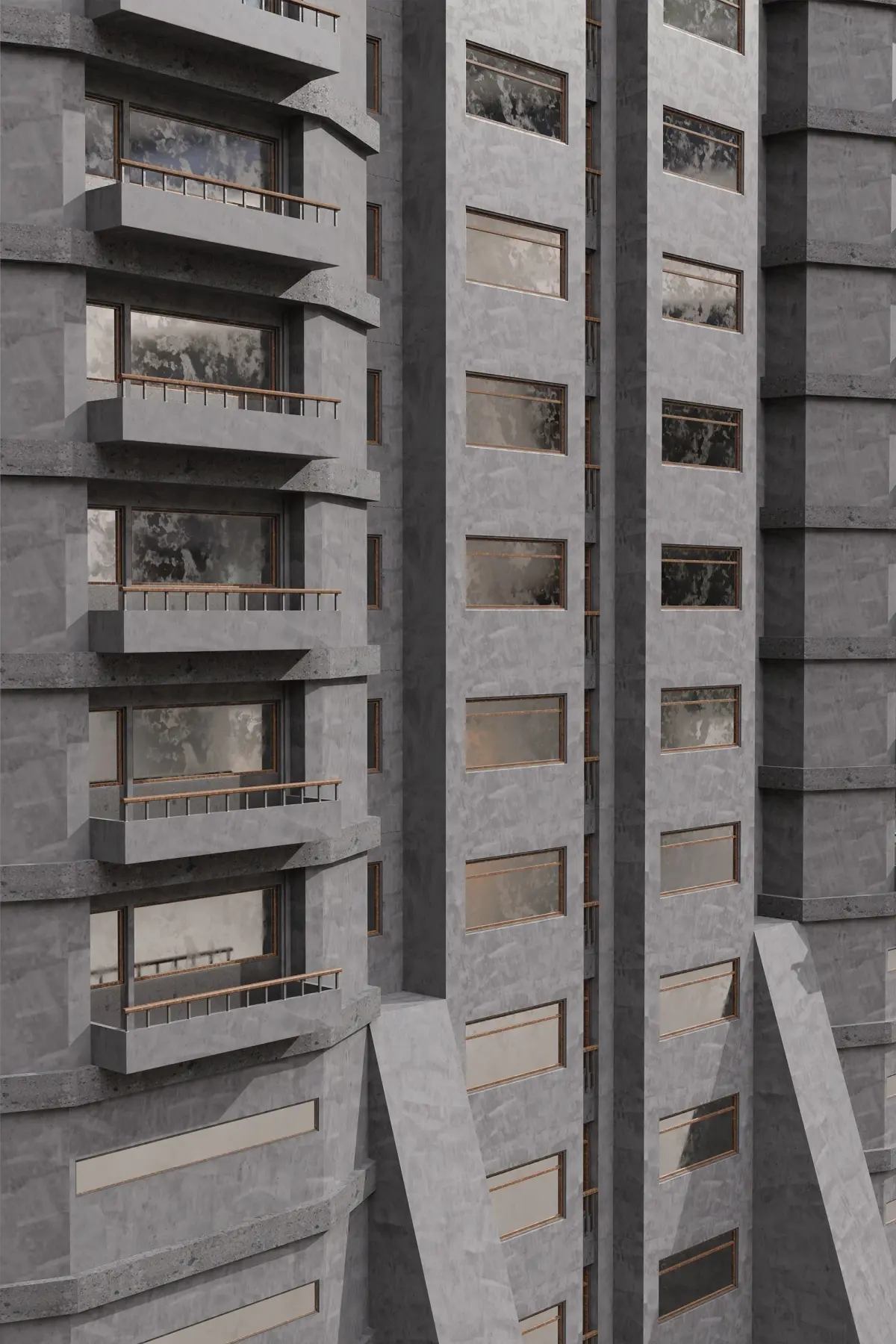 A building with unwrapped textures incl. diffuse, roughness, metalness, normal (openGL) and specular.