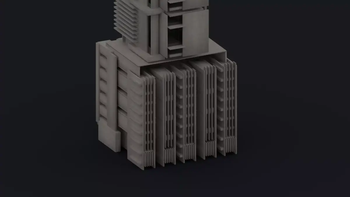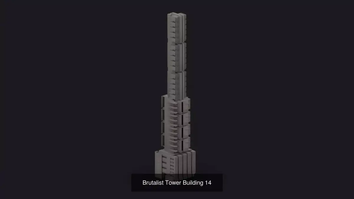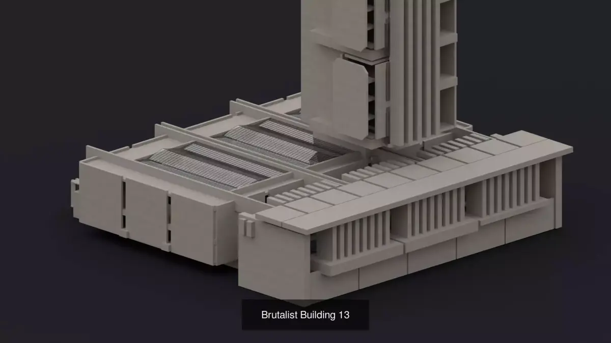 - Modular Brutalist building with full exterior and interior. World scale. Designed for urban, dystopian, or architectural projects.