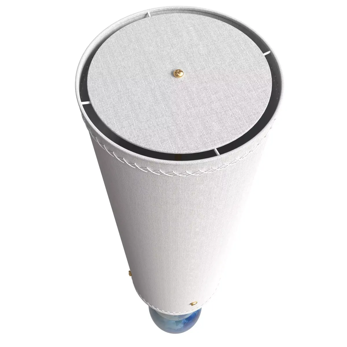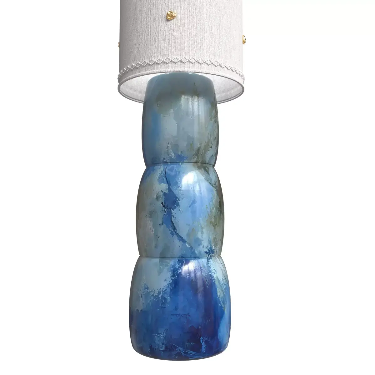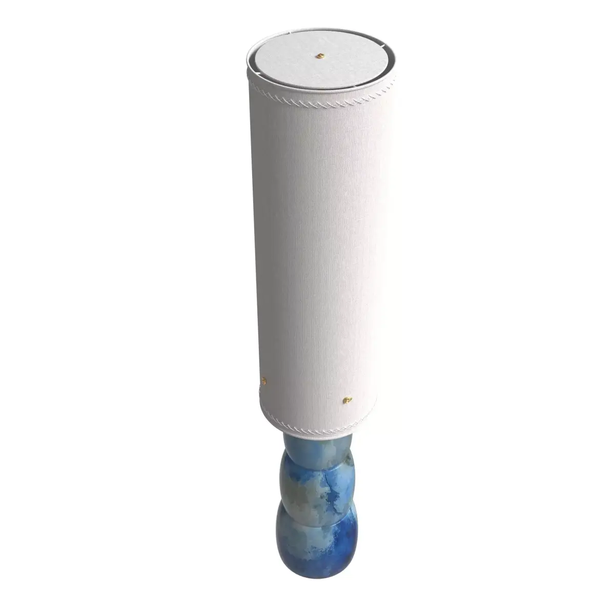 HAND-GLAZED CERAMIC FLOOR LIGHT WITH LINEN SHADEAND CAST BRASS FINIALS, CERAMIC BASE WITH HANDBRUSHED-ON GLAZE