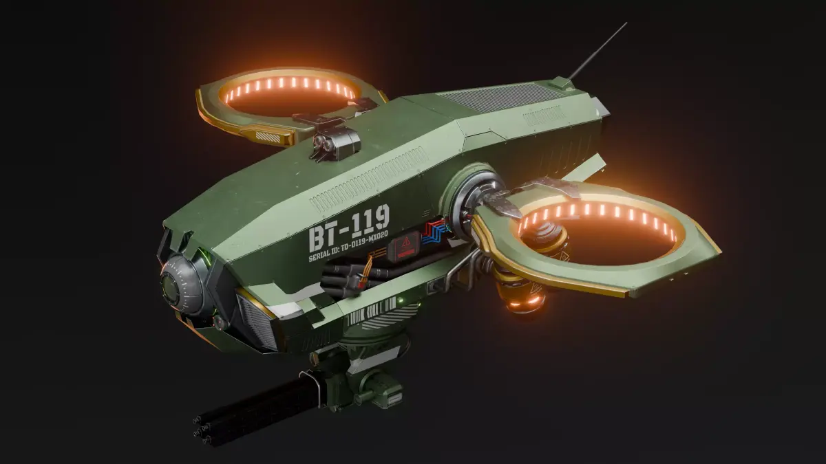 High-quality, game-ready sci-fi tactical drone with PBR textures, clean topology, and detailed hard-surface design. Perfect for games, cinematics, and VR/AR applications. Blend file, and 4K texture maps.