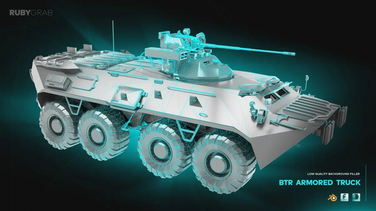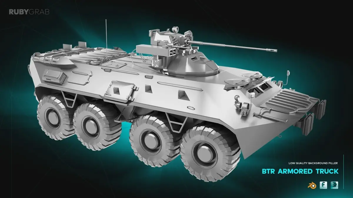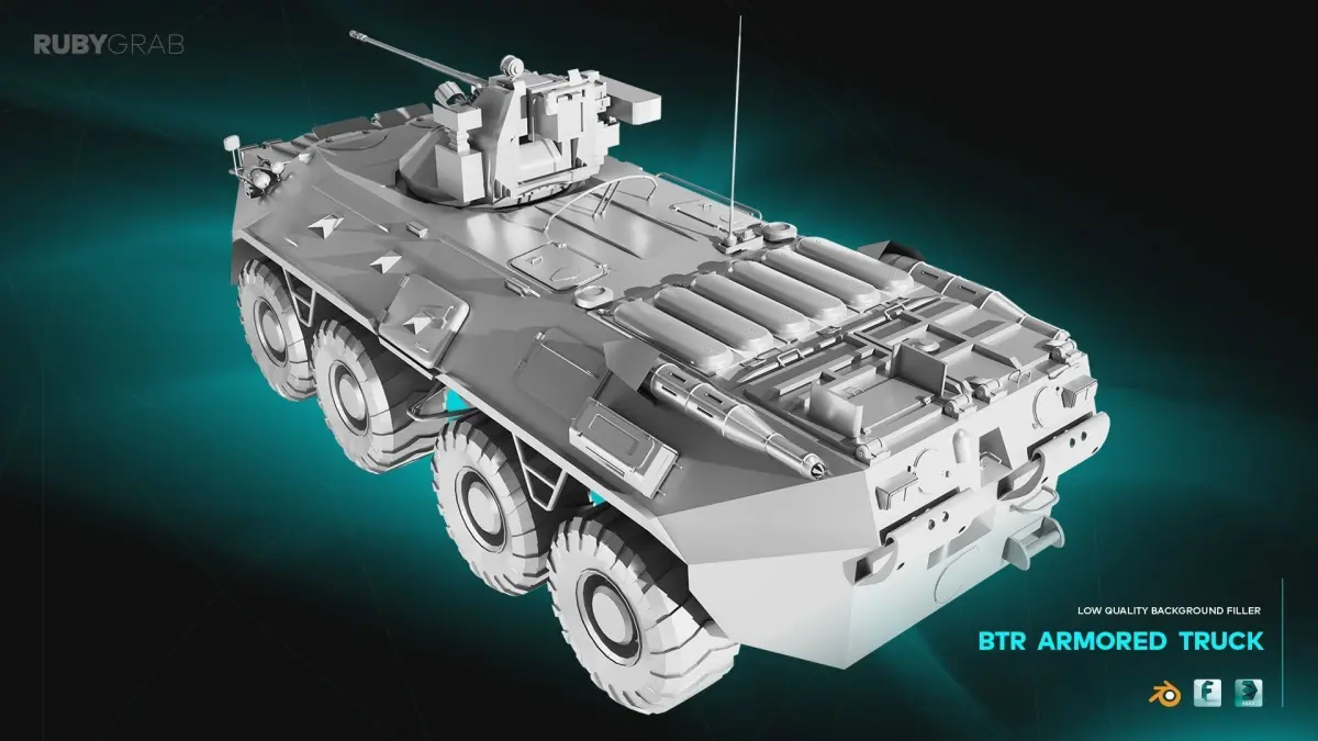 Introducing our BTR Armored Truck 3D model, designed to serve as a small object in a large scene, making it Low Quality yet highly effective as filler on the battlefield.