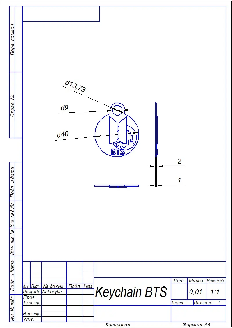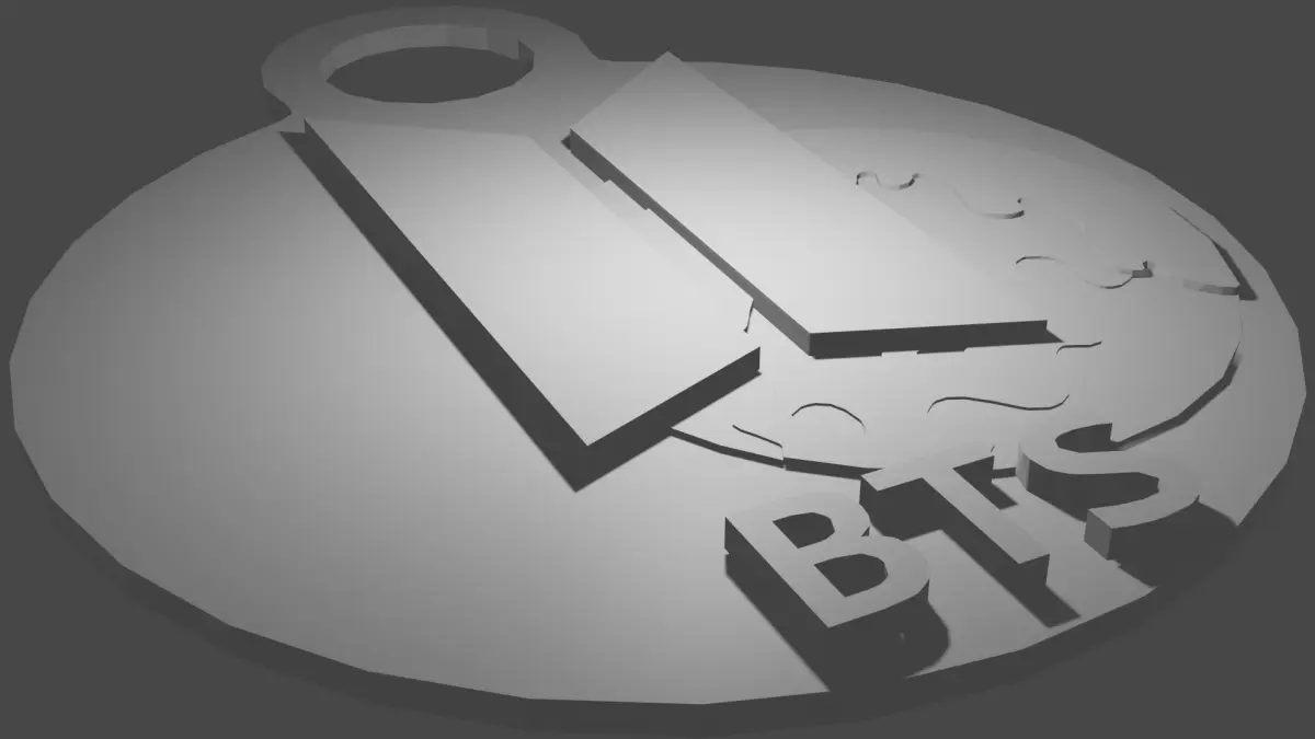 BTS keychain made for 3d printing. Main black plate was redone for economy..STEP, .IGES, .STL, .blend formats included..a3d format is native, made in KOMPAS 3D v15, assembled from 2 parts.