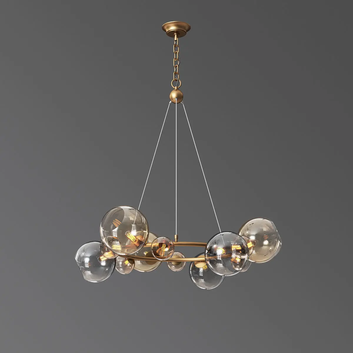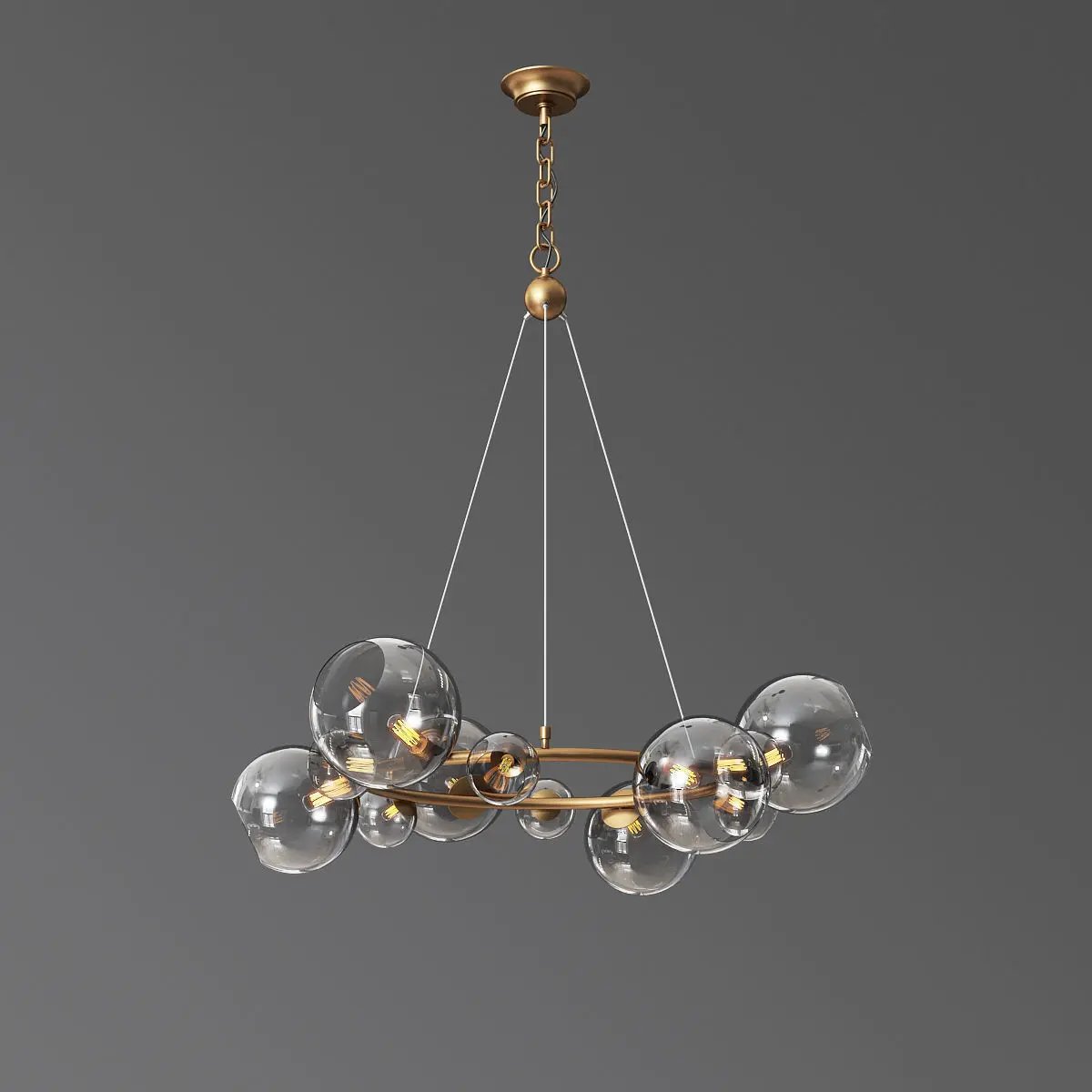 The file contains: - Bubbles 9 light chandelierMaterials: Brass, Gold, Black, milky, opaque, ledArchive Contains: -3d max2012Vray 3.20.02CoronaMap.objThanks