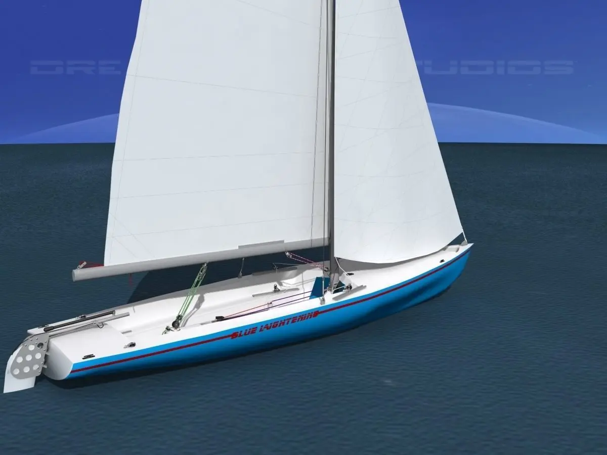 This model of a Buccaneer 18 racing sailboat is built with a lot of detail. It is detailed in running rigging, accessories, rails, rigging and running rigging. The running rigging is animateable. The model comes with a jib and main sail. It does not include the spinnaker sale or spinnaker pole. It does however have the spinnaker chute which was molded into the later boats for easy deployment of the spinnaker.