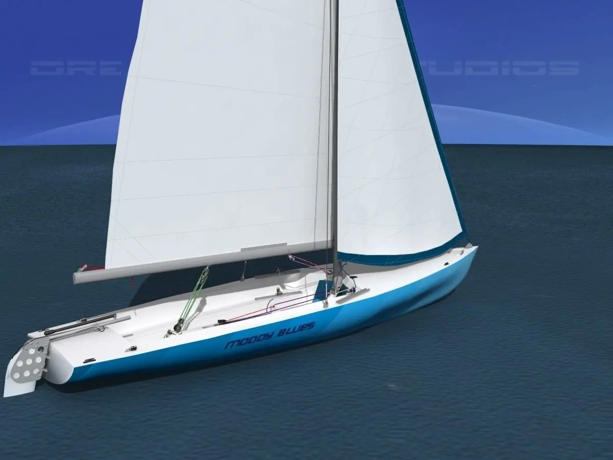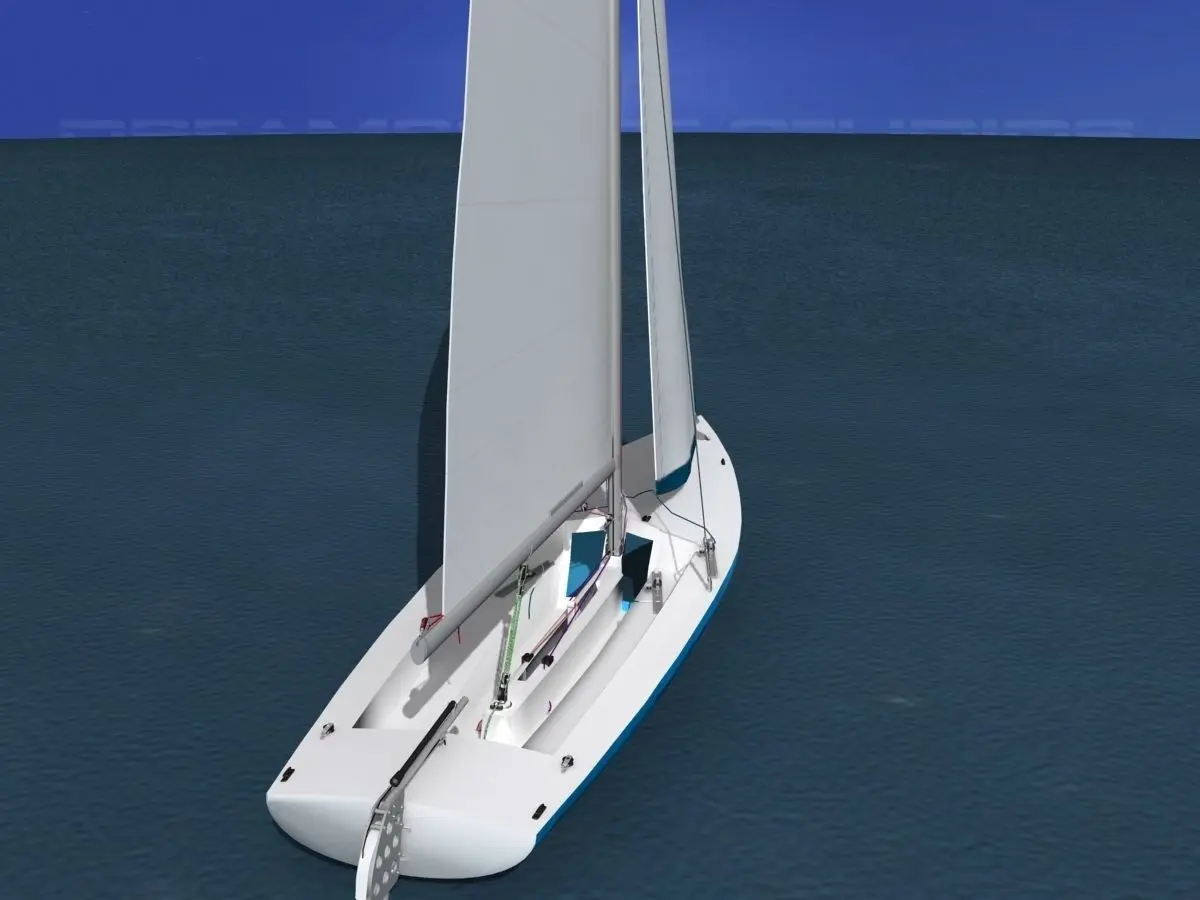This model of a Buccaneer 18 racing sailboat is built with a lot of detail. It is detailed in running rigging, accessories, rails, rigging and running rigging. The running rigging is animateable. The model comes with a jib and main sail. It does not include the spinnaker sale or spinnaker pole. It does however have the spinnaker chute which was molded into the later boats for easy deployment of the spinnaker.