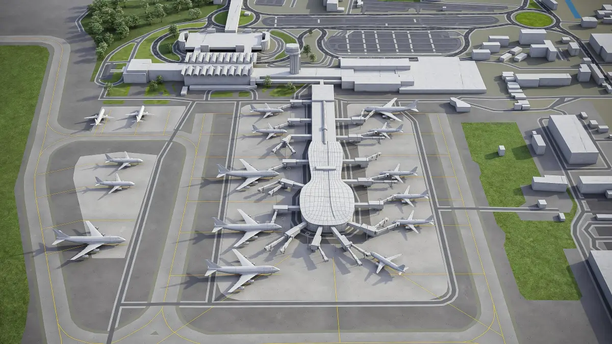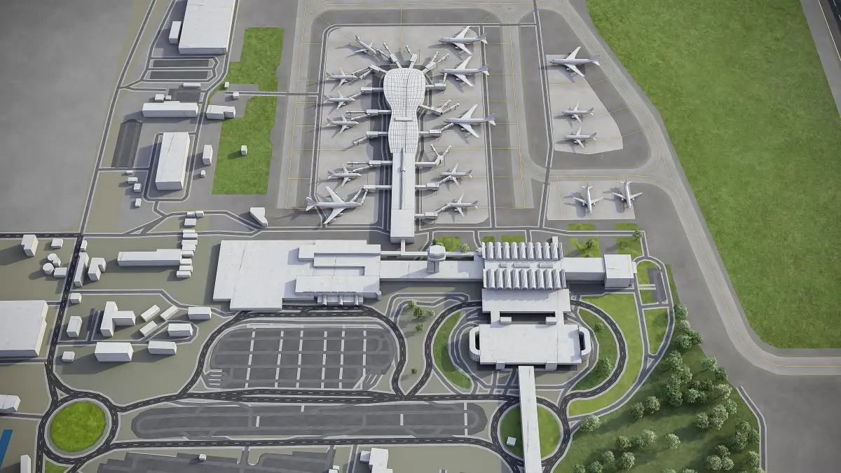 - Trees, vegetation, land-use and airport surface with the textures assigned